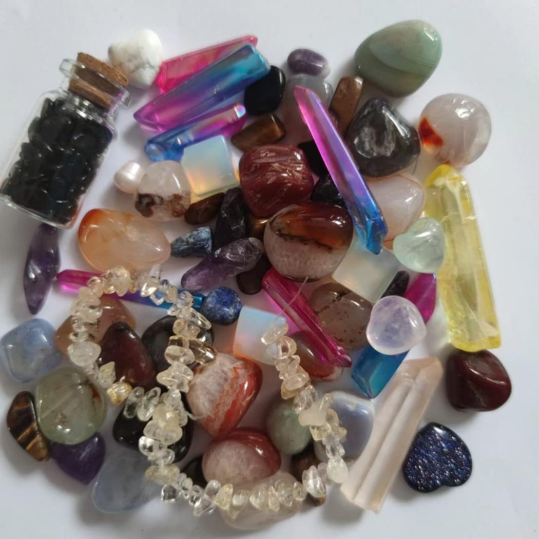 Healing Crystal Set Mystery Stone Bag Lucky Gemstone Witchy Crystals Scoops Tumble Stones Tourmalime Agate Amethyst Clear Crystal Lapis Lazuli Opalite Aura Crystals Black Obsidian Unakite Mookaite