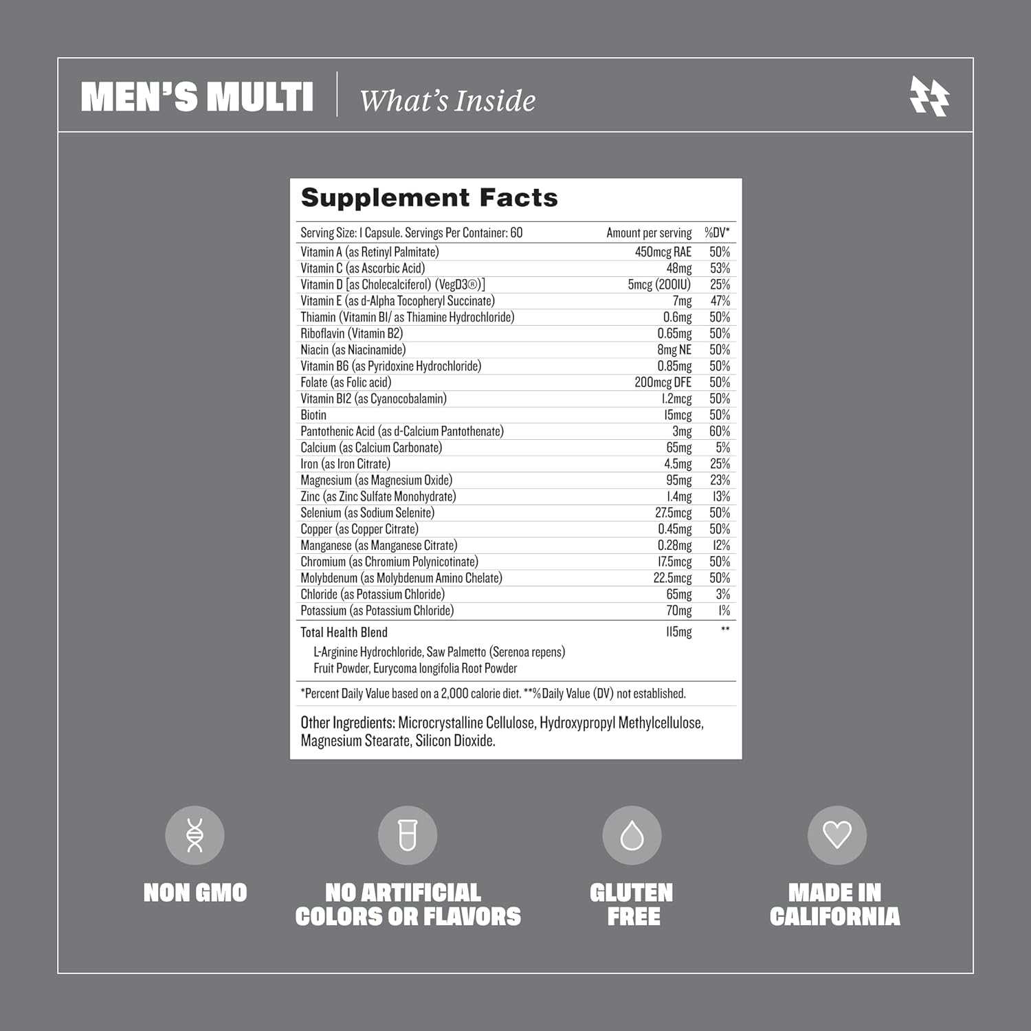MEN'S MULTI: Support your health with 23 essential vitamins and minerals, all in one convenient capsuleTHE MULTIS: These Multivitamins are our multi-taskers. Much like you, they do way more than one thing at a time, with the essential vitamins and minerals you need to feel like your best selfTHE POWER OF HABIT: At Health By Habit we know maintaining your health is hard enough, so we don’t overcomplicate it. We’re democratizing wellness by making products that are affordable, accessible and straight-forward. That do what they say on the labelFORMULATED BY EXPERTS: Created by our expert research and development team — who have decades of experience between them — our clever formulations leverage active ingredients at the intersection of holistic and traditional medicines. The result? Solutions that support your desired wellness outcomesMAKING IT A HABIT: Health By Habit vitamins are housed in fun, color-coded bottles you’ll want to show off (rather than stash away out of sight and forget about). Routine doesn’t have to be boring — and neither does taking your vitaminsOur Men’s Multi is a male multivitamin designed to support general health and wellness—and help you go the distance—with 23 essential vitamins and minerals such as Vitamins A-E, Calcium, Iron, Magnesium, Potassium and Zinc, plus a Total Health Blend containing L’Arginine and Saw Palmetto