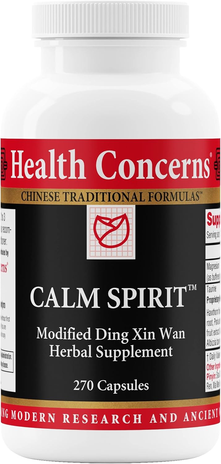 Health Concerns Calm Spirit - Stress Relief Supplement For Men & Women - Herbal Calming Support - Eases Tension & Nervousness - Magnesium, Hawthorn, Chinese Peony & Taurine - 90 Capsules