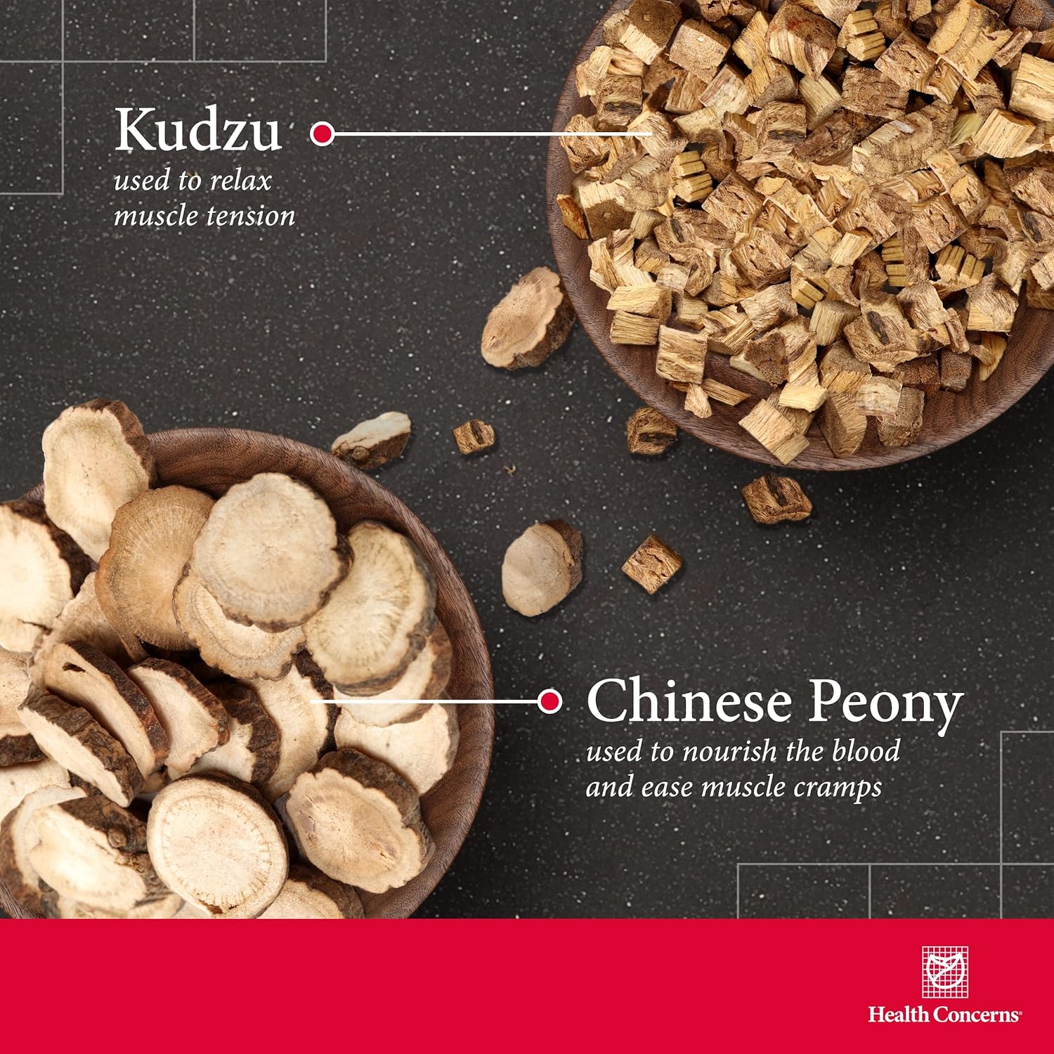 About this item Muscle Relief Support – Helps ease upper body muscle spasms, cramps, and tension using traditional Chinese herbs known to promote circulation and muscular relaxation. TCM-Based Credibility – Crafted by Health Concerns with Chinese Peony, Kudzu, Licorice, Clematis, and Spatholobus extracts for premium herbal muscle and nerve health support. Gentle Herbal Aid – Supports individuals experiencing upper body muscle discomfort, restless leg sensations, or tension from injuries with a traditional, non-stimulating herbal approach. 90 Capsules Per Bottle – Contains 90 vegetable capsules per bottle with 30 servings total; each daily dose is 3 capsules of clean, plant-based ingredients with no artificial additives. One Unique Blend - Achieving a change in health requires the right ingredients in the right doses. This used to require purchasing many individual vitamins and nutrients to create an effective blend. Health Concerns was created to put that blend into one bottle. See more product details,Muscle Relief Support – Helps ease upper body muscle spasms, cramps, and tension using traditional Chinese herbs known to promote circulation and muscular relaxation,TCM-Based Credibility – Crafted by Health Concerns with Chinese Peony, Kudzu, Licorice, Clematis, and Spatholobus extracts for premium herbal muscle and nerve health support,Gentle Herbal Aid – Supports individuals experiencing upper body muscle discomfort, restless leg sensations, or tension from injuries with a traditional, non-stimulating herbal approach,90 Capsules Per Bottle – Contains 90 vegetable capsules per bottle with 30 servings total; each daily dose is 3 capsules of clean, plant-based ingredients with no artificial additives,One Unique Blend - Achieving a change in health requires the right ingredients in the right doses. This used to require purchasing many individual vitamins and nutrients to create an effective blend. Health Concerns was created to put that blend into one bottle