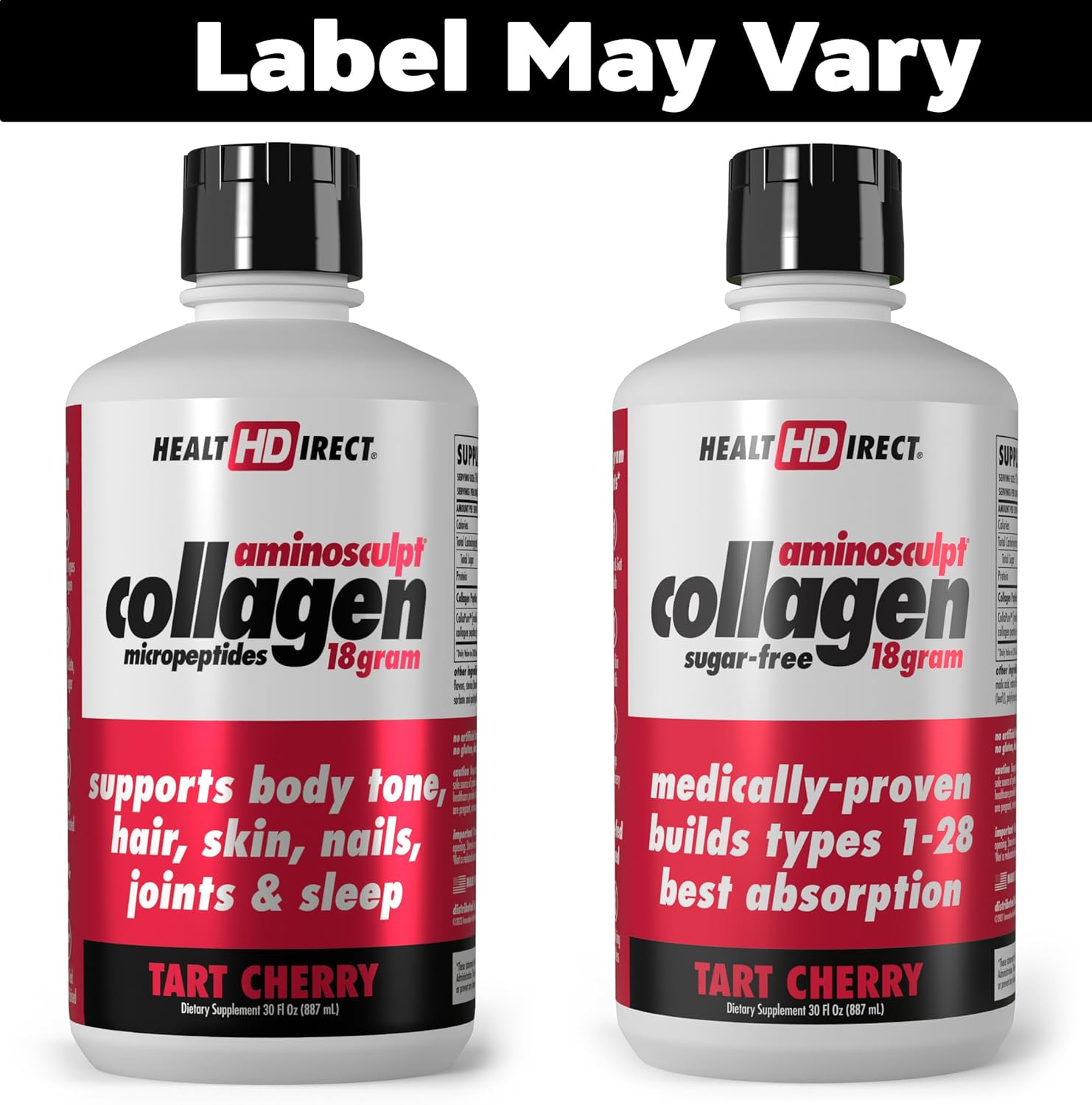 Health Direct Aminosculpt Sugar-Free Collagen Supplement - High Potency Medical-Grade Protein For Hair, Skin, Nails & Joints, Grass-Fed, Non-Gmo, Liquid Collagen - Tart Cherry - 30 Fl Oz