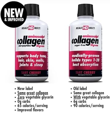 About this item Medical-Grade Collagen: With 40 years of clinical research and use, AminoSculpt Sugar-Free 18 Gram offers the only Type 1 Collagen trusted by over 4,700 health professionals, including surgeons, doctors, and nutritionists. It supports lean muscle, healthy joints, cartilage, hair, skin, and nails, and more.* Highly Concentrated & Easily Absorbed: Our liquid collagen protein offers 18,000 mg of collagen peptides per serving, which is more than most other collagen supplements. The dipeptides and tripeptides have low molecular weights for rapid and complete absorption. This makes them better absorbed than powder collagen, so you need less.* Whole Body Health, Multi-Collagen Benefits: Our liquid collagen peptides build all 28 types of collagen in your body and are not just for your hair, skin, and nails. They support building and repairing muscle, promote better sleep, enhance recovery, and help maintain a healthy weight by aiding satiety and boosting metabolism.* Convenient, Ready to Use, Just 1 Oz Needed: No more mixing collagen powder supplements or swallowing a ton of pills. Our collagen protein, available in a generous 30oz bottle, is ready to drink. An easier choice compared to collagen powders for women that require mixing, additional ingredients, and cleanup.* Manufactured in the USA: Formulated and manufactured under GMPs outlined by the US FDA, AminoSculpt is made with pasture-raised, grass-fed bovine ensuring a high-quality, non-GMO collagen supplement. It's also Kosher certified. Free of sugar, gluten, dairy, soy, and artificial additives, making it suitable for those with dietary restrictions.* See more product details,Medical-Grade Collagen: With 40 years of clinical research and use, AminoSculpt Sugar-Free 18 Gram offers the only Type 1 Collagen trusted by over 4,700 health professionals, including surgeons, doctors, and nutritionists. It supports lean muscle, healthy joints, cartilage, hair, skin, and nails, and more,Highly Concentrated & Easily Absorbed: Our liquid collagen protein offers 18,000 mg of collagen peptides per serving, which is more than most other collagen supplements. The dipeptides and tripeptides have low molecular weights for rapid and complete absorption. This makes them better absorbed than powder collagen, so you need less,Whole Body Health, Multi-Collagen Benefits: Our liquid collagen peptides build all 28 types of collagen in your body and are not just for your hair, skin, and nails. They support building and repairing muscle, promote better sleep, enhance recovery, and help maintain a healthy weight by aiding satiety and boosting metabolism,Convenient, Ready to Use, Just 1 Oz Needed: No more mixing collagen powder supplements or swallowing a ton of pills. Our collagen protein, available in a generous 30oz bottle, is ready to drink. An easier choice compared to collagen powders for women that require mixing, additional ingredients, and cleanup,Manufactured in the USA: Formulated and manufactured under GMPs outlined by the US FDA, AminoSculpt is made with pasture-raised, grass-fed bovine ensuring a high-quality, non-GMO collagen supplement. It's also Kosher certified. Free of sugar, gluten, dairy, soy, and artificial additives, making it suitable for those with dietary restrictions