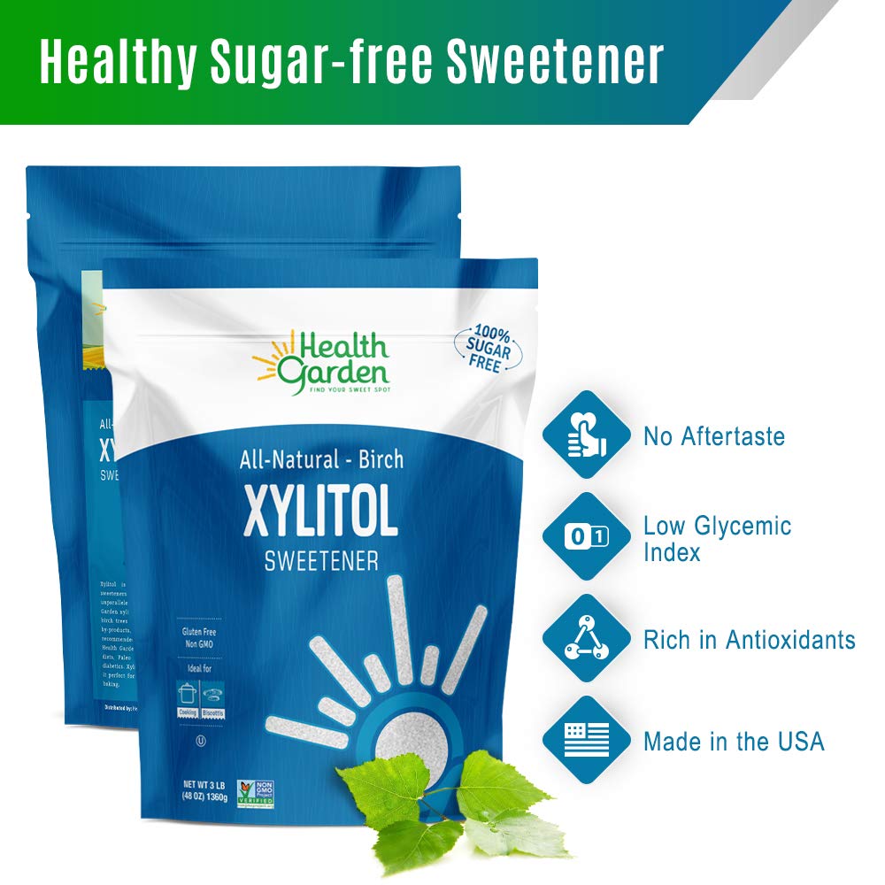 About this item 100% Birch-Derived Sweetener β Enjoy Health Garden Xylitol made exclusively from birch, offering a natural sugar alternative that measures cup-for-cup like sugar. Perfect for beverages, baking, and everyday sweetness needs. Proudly Made in the USA β Trust in the quality and safety of a product crafted in the USA. Health Garden Xylitol is manufactured under strict standards to ensure a premium, natural sweetener for your family. Zero Net Carbs, Zero Glycemic Impact: With no glycemic index and zero net carbs, Health Garden Xylitol is ideal for keto and diabetic-friendly lifestyles, letting you enjoy sweetness guilt-free. All-Natural, Non-GMO, Gluten-Free β Crafted with pure ingredients, our xylitol is gluten-free, kosher, and made without any GMOs or artificial additives. Enjoy a cleaner, healthier sugar substitute. Resealable Bag for Freshness: Keep your xylitol fresh and ready to use with a convenient resealable bag. Perfect for baking, beverages, or everyday sweetening needs, it ensures easy storage and lasting quality. See more product details,100% Birch-Derived Sweetener β Enjoy Health Garden Xylitol made exclusively from birch, offering a natural sugar alternative that measures cup-for-cup like sugar. Perfect for beverages, baking, and everyday sweetness needs,Proudly Made in the USA β Trust in the quality and safety of a product crafted in the USA. Health Garden Xylitol is manufactured under strict standards to ensure a premium, natural sweetener for your family,Zero Net Carbs, Zero Glycemic Impact: With no glycemic index and zero net carbs, Health Garden Xylitol is ideal for keto and diabetic-friendly lifestyles, letting you enjoy sweetness guilt-free,All-Natural, Non-GMO, Gluten-Free β Crafted with pure ingredients, our xylitol is gluten-free, kosher, and made without any GMOs or artificial additives. Enjoy a cleaner, healthier sugar substitute,Resealable Bag for Freshness: Keep your xylitol fresh and ready to use with a convenient resealable bag. Perfect for baking, beverages, or everyday sweetening needs, it ensures easy storage and lasting quality