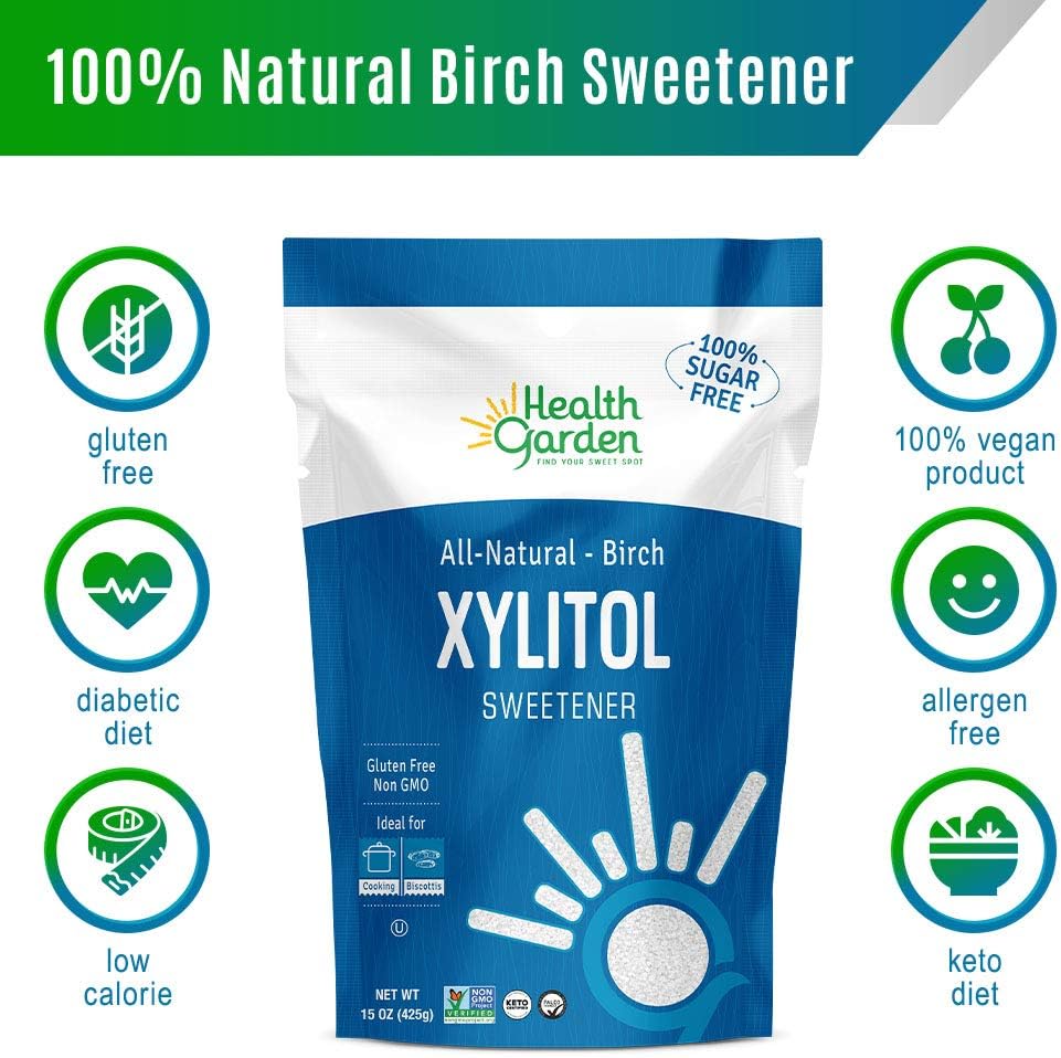 Health Garden Birch Xylitol Sweetener - Non Gmo - Kosher - Made In The U.S.A. - Keto Friendly (1 Lb)