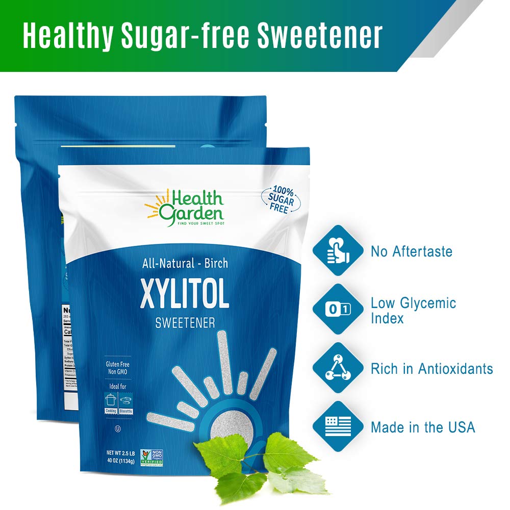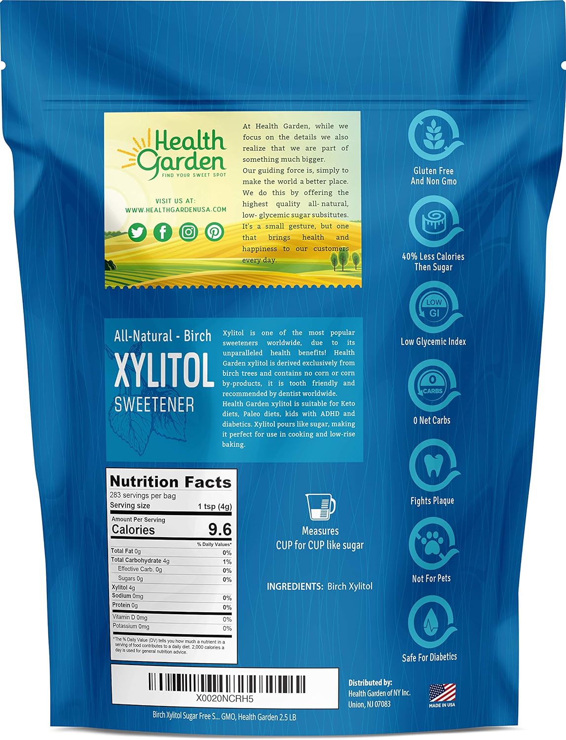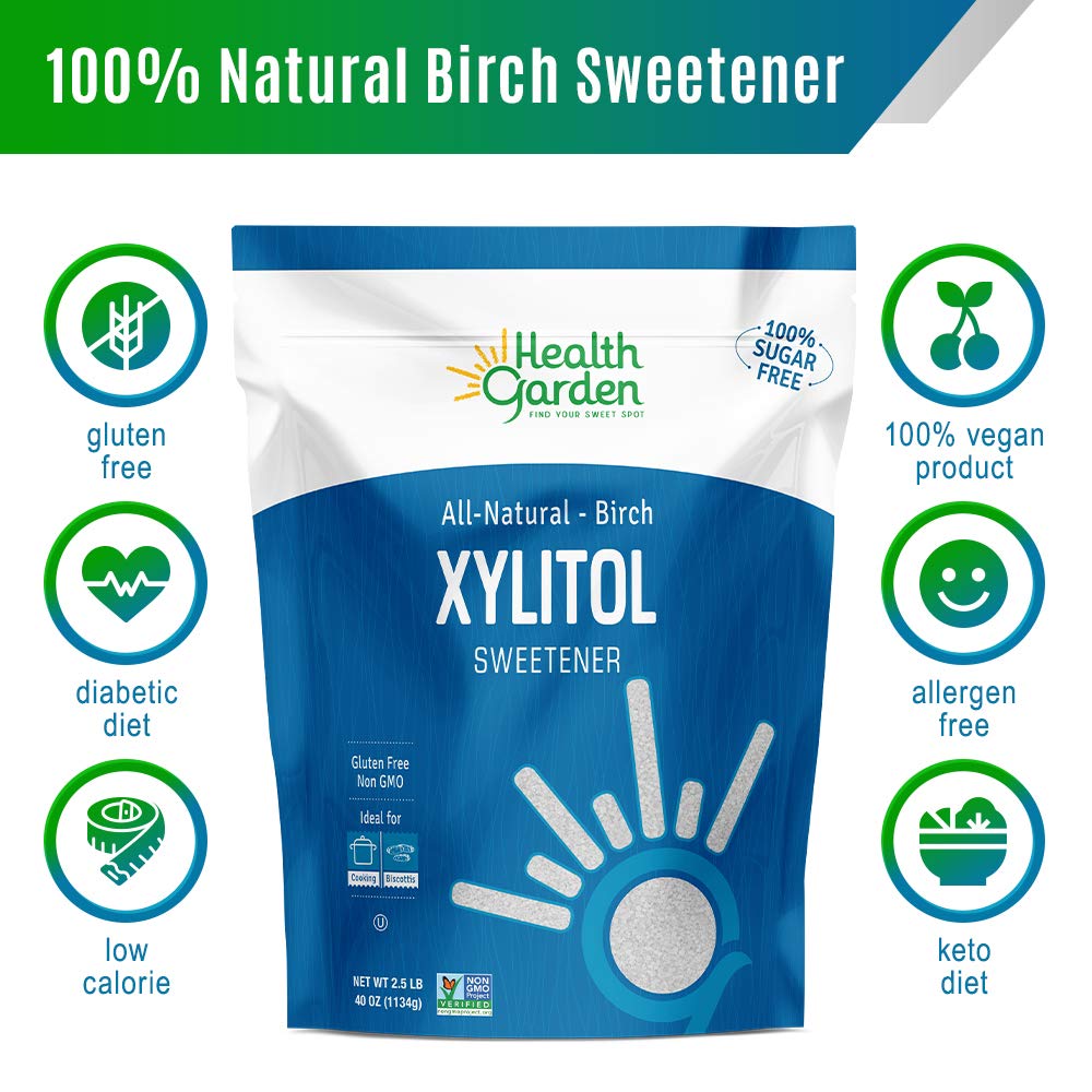 Health Garden Birch Xylitol Sweetener - Pure Birch Xylitol - Non Gmo, Kosher, And Made In The U.S.A. - Ideal Powdered Sugar Substitute - Non-Gmo Sugar Alternative - 2.5 Lb