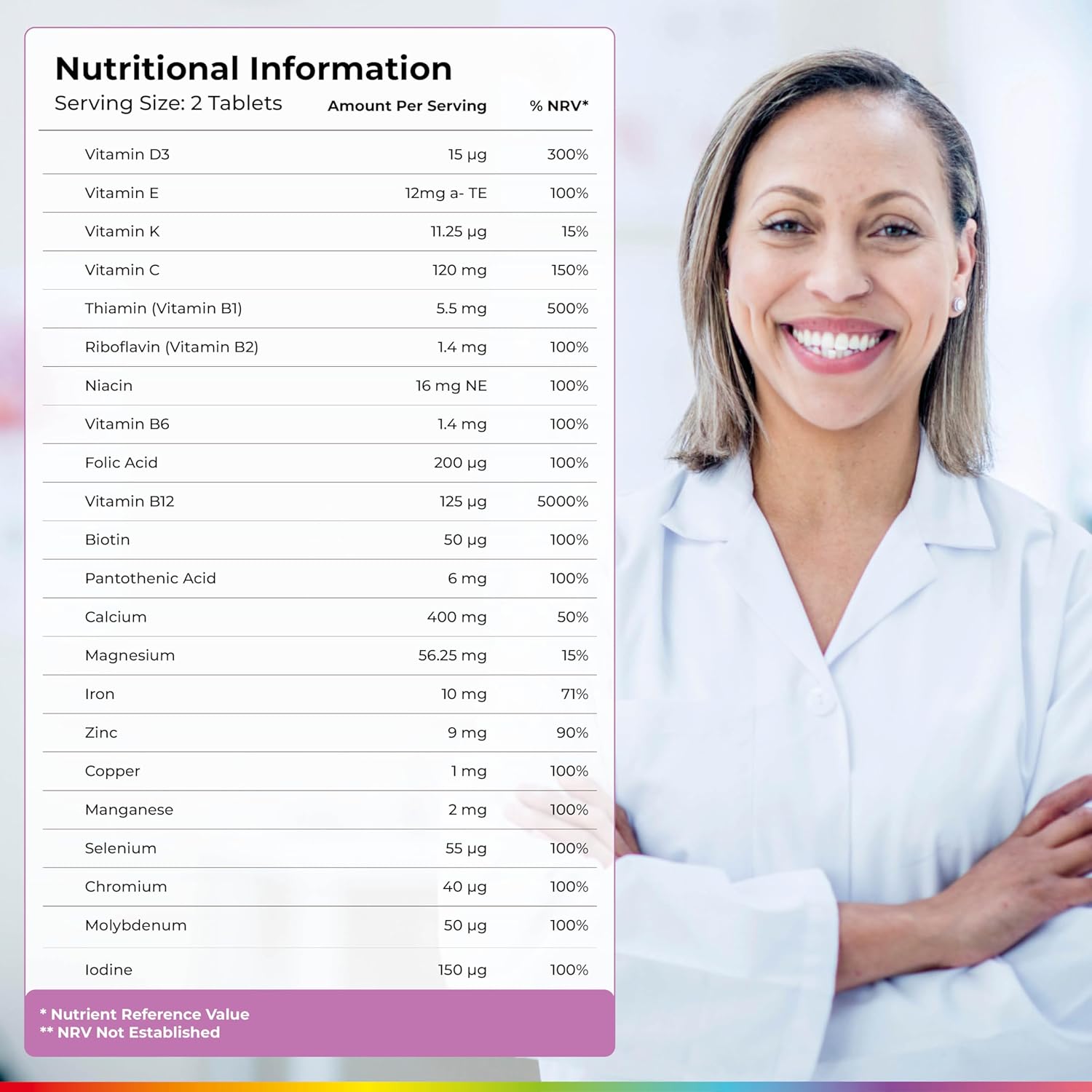 Health & Her Multivitamin Support After Menopause For Women 55+ - Supplements For Women - Nutrition And Wellbeing Support - 1 Month Supply, 60 Tablets - Vegan & Gluten Free