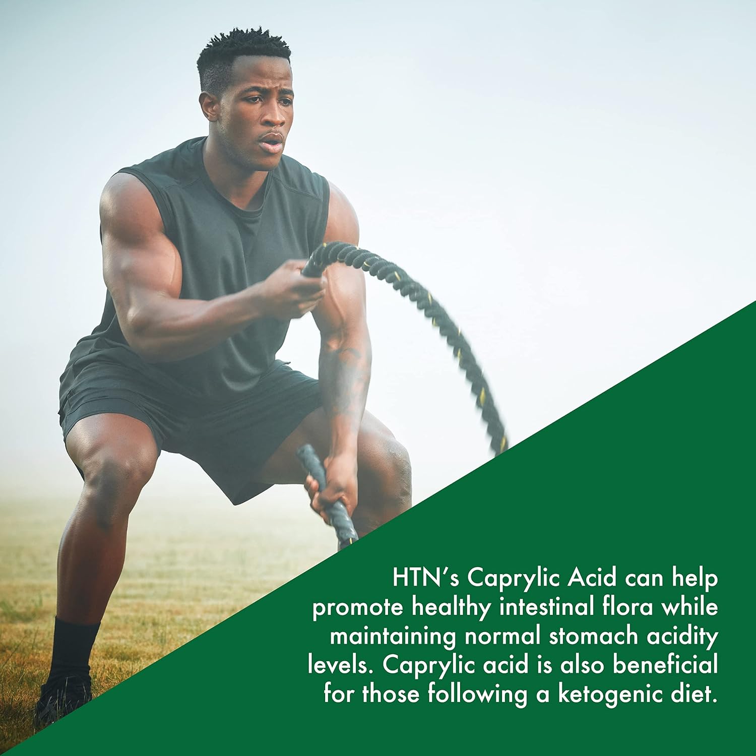About this item Powerful: Each softgels contains 1gram of Pure Medium-Chain Triglyceride, that provides 600mg Caprylic Acid supplement which is typically found in coconut and palm kernel oils, as well as breast milk. It helps promote healthy digestion and intestinal flora while maintaining normal stomach acidity levels. Beneficial: Caprylic Acid is digested in the liver instead of the intestines, making it a great source of quick energy and improved focus. It is essential to those following a ketogenic diet as it promotes endogenous ketone production. A Brand You Can Trust: With over 40 years of manufacturing experience, utilising scientifically supported data and practices, HTN strives to provide the best quality nutrition products on the market. Quality, Safety, Integrity: HTN's core beliefs guide us to empower people to live healthier lives by providing superior-quality nutrition products and serving as a trusted source of nutrition information. Commitment: We stand behind our products and our customers every day; if you are not satisfied for any reason, let us know and we'll make it right; no questions asked. See more product details,Powerful: Each softgels contains 1gram of Pure Medium-Chain Triglyceride, that provides 600mg Caprylic Acid supplement which is typically found in coconut and palm kernel oils, as well as breast milk. It helps promote healthy digestion and intestinal flora while maintaining normal stomach acidity levels,Beneficial: Caprylic Acid is digested in the liver instead of the intestines, making it a great source of quick energy and improved focus. It is essential to those following a ketogenic diet as it promotes endogenous ketone production,A Brand You Can Trust: With over 40 years of manufacturing experience, utilising scientifically supported data and practices, HTN strives to provide the best quality nutrition products on the market,Quality, Safety, Integrity: HTN's core beliefs guide us to empower people to live healthier lives by providing superior-quality nutrition products and serving as a trusted source of nutrition information,Commitment: We stand behind our products and our customers every day; if you are not satisfied for any reason, let us know and we'll make it right; no questions asked