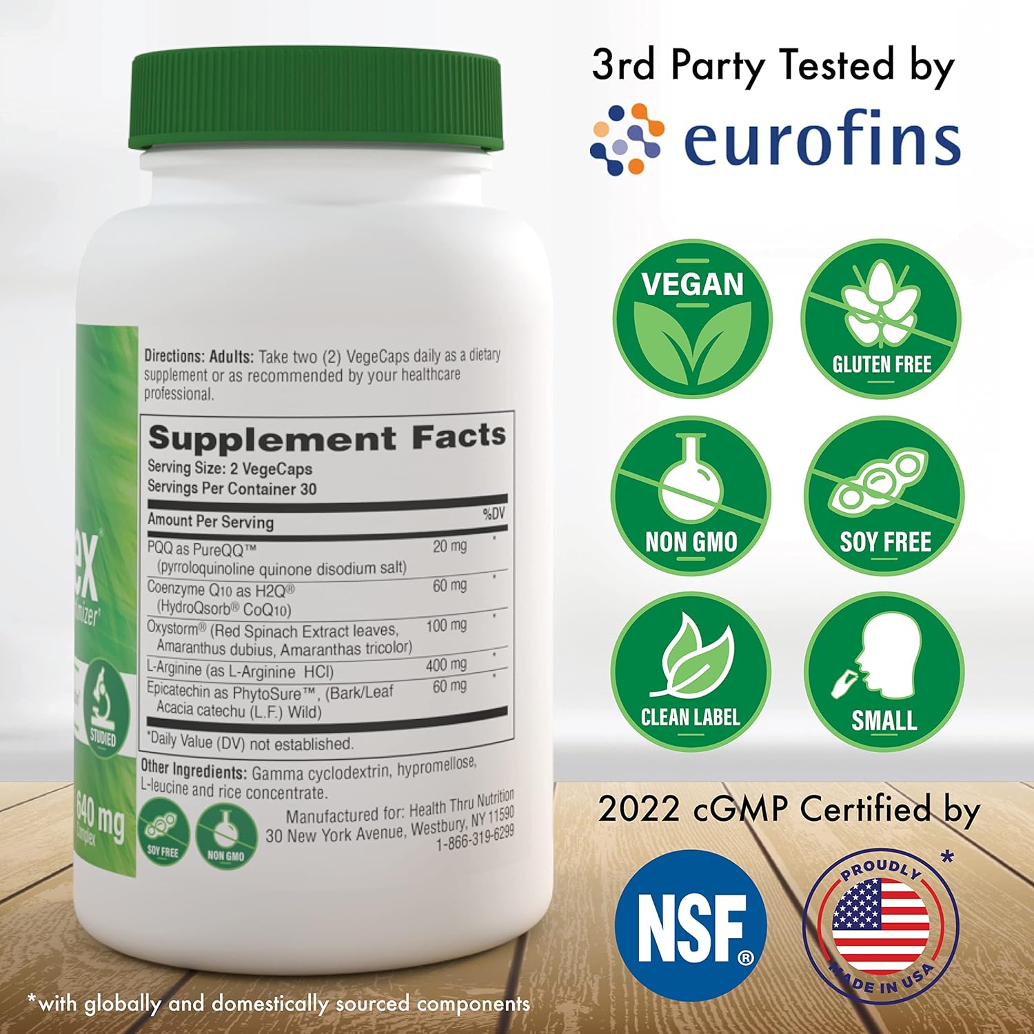 DESCRIPTION : Health Thru Nutrition CelluRex with High Absorption CoQ-10, PQQ & More | Cellular Optimizer for Optimal Cardiovascular and Mitochondria Function Support | Vegan Certified | Non-GMO (Pack of 60)