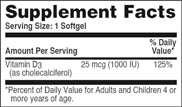 ?? Strong And Healthy Bones: Getting sufficient amounts of D3 is critical for absorbing other minerals to keep bones healthy as we age; one easy-to-swallow softgel provides 125% of the recommended allowance!