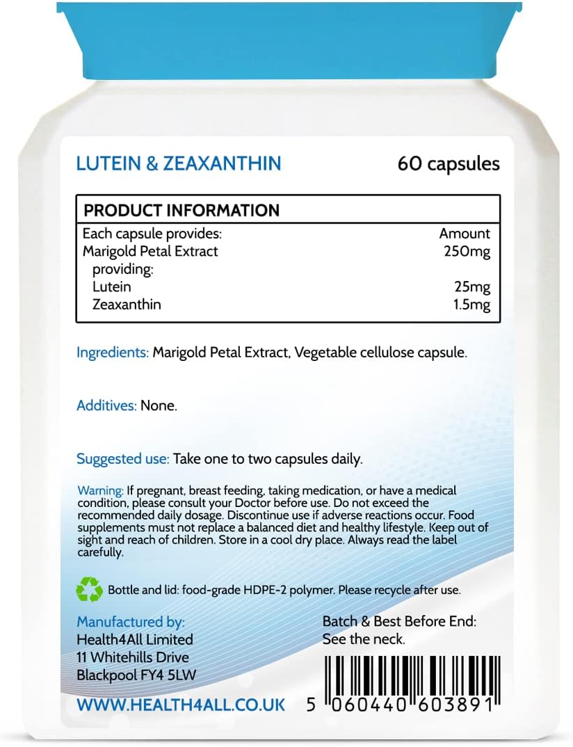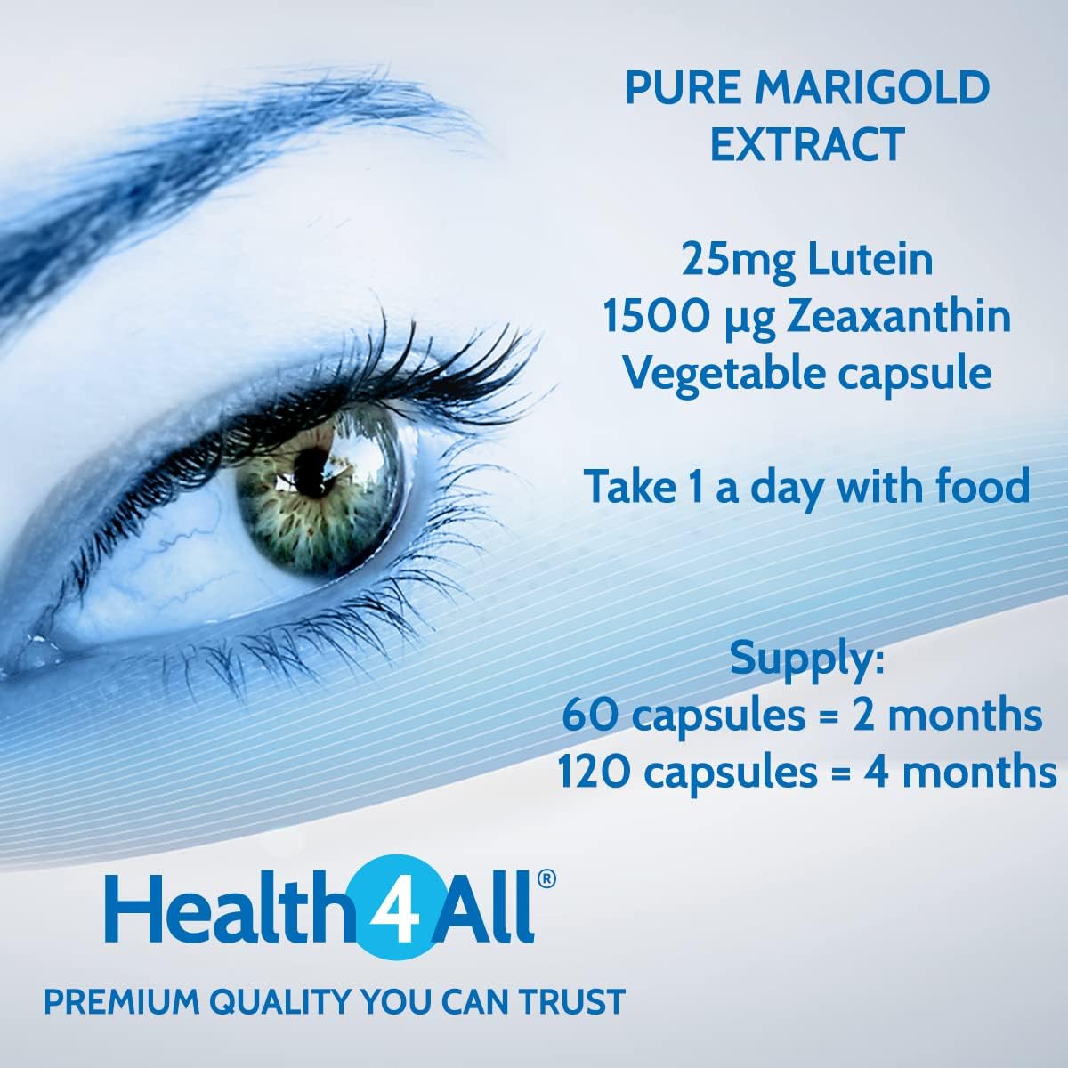 Health4All Lutein And Zeaxanthin Supplement 25Mg Per Capsule, 60 Capsules 2 Months Supply, Purest Eye Health Marigold Extract Supplement, Natural Eye Vitamins For Vision Care & Floaters | Made In Uk