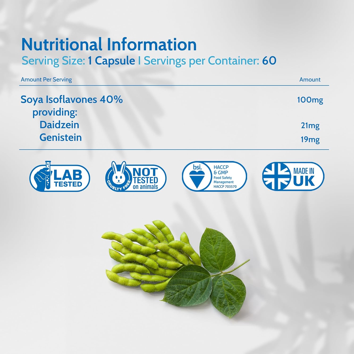 Health4All Soya Isoflavones 40Mg Per Capsule, 60 Capsules 2 Months Supply, Menopause Support Supplement, High Strength Soya Isoflavones 40% Extract, Non-Gmo, Non-Irradiated, 1 A Day | Made In Uk