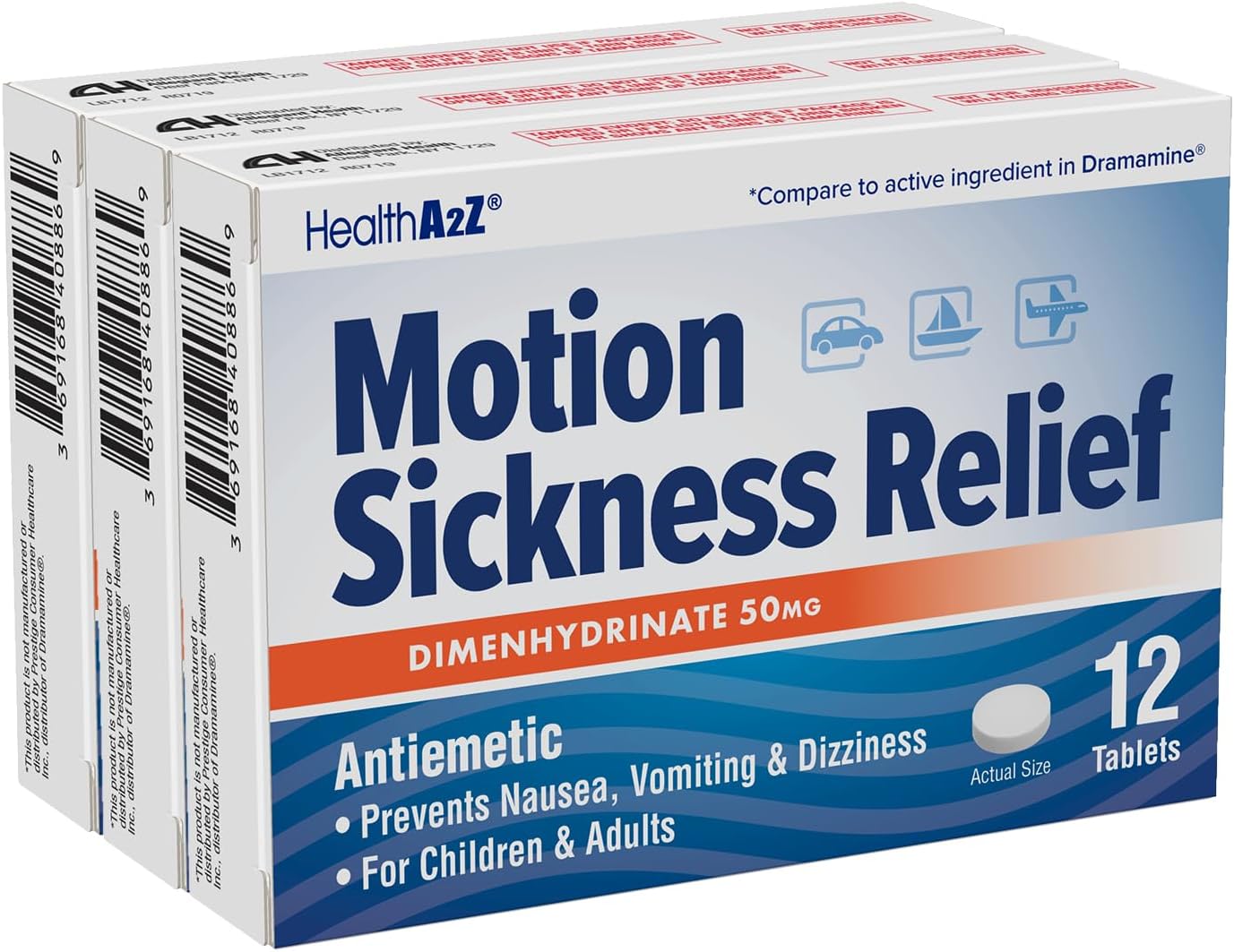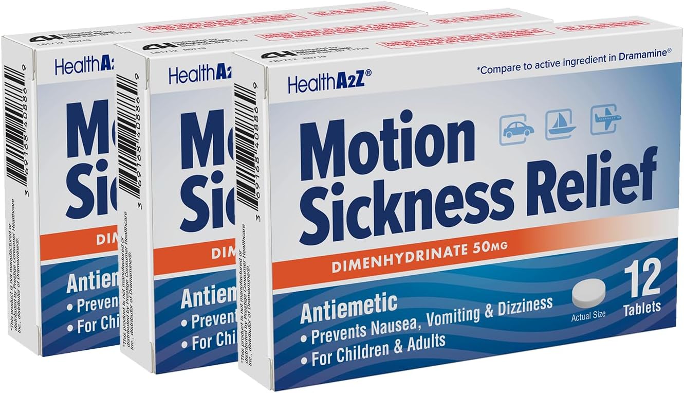 Healtha2Z® Motion Sickness Relief | Dimenhydrinate 50Mg | Antiemetic | Prevents Nausea, Vomiting & Diziness | For Children & Adults (36 Counts (Pack Of 3))