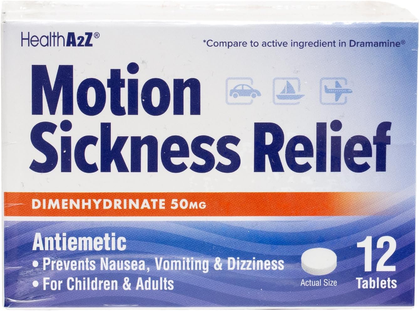 Healtha2Z Motion Sickness Relief, 24*12 Tablets, Value Package Healtha2Z Motion Sickness Relief Prevents Nausea, Vomiting And Dizziness Commonly Associated With Motion Sickness. It Is Available Over-The-Counter For Adults And Children Over Age 2. Healtha2Z Motion Sickness Relief For Anytime Motion Sickness Symptoms Strike. Active Ingredient (In Each Tablet): Dimenhydrinate 50Mg Uses For Prevention And Improve Of These Symptoms Associated With Motion Sickness Nausea Vomiting Dizziness Why Healtha2Z Dramamine Motion Sickness Relief Prevents Nausea, Vomiting & Dizziness It Prevents And Improve Nausea, Vomiting And Dizziness Associated With Motion Sickness And Provides Powerful, Fast Relief From Motion Sickness When You Need It Most. For Children And Adults Healtha2Z Motion Sickness Relief Is Available Over-The-Counter For Adults And Children Over Age 2. Easy To Carry Easy To Carry Which Is Especially Convenient During Travel. Directions To Prevent Motion Sickness, The First Dose Should Be Taken ½ To 1 Hour Before Starting Activity: Adults & Children 12 Years And Over: 1 To 2 Tablets Every 4-6 Hours; Do Not Take More Than 8 Tablets In 24 Hours, Or As Directed By A Doctor Children 6 To Under 12 Years: ½ To 1 Tablet Every 6-8 Hours; Do Not Take More Than 3 Tablets In 24 Hours, Or As Directed By A Doctor Children 2 To Under 6 Years: ½ Tablet Every 6-8 Hours; Do Not Take More Than 1-½ Tablets In 24 Hours, Or As Directed By A Doctor