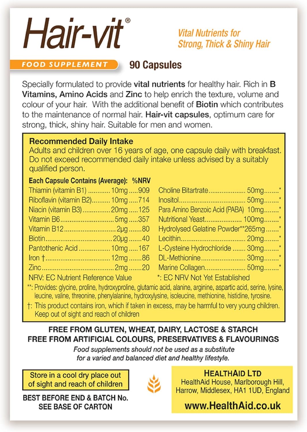 Healthaid Hair Vitamins For Hair Growth With Essential Vitamins And Minerals, 90 Capsules, Pack Of 1