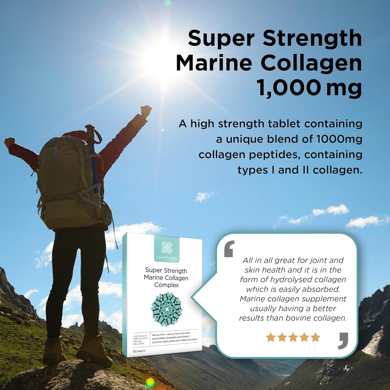 Healthspan 1,000Mg Marine Collagen Complex | 800Mg Type I + 200Mg Type Ii Collagen | Support Your Joints, Bones & Connective Tissue | Added Benefits For Skin & Beauty (60 Tablets)