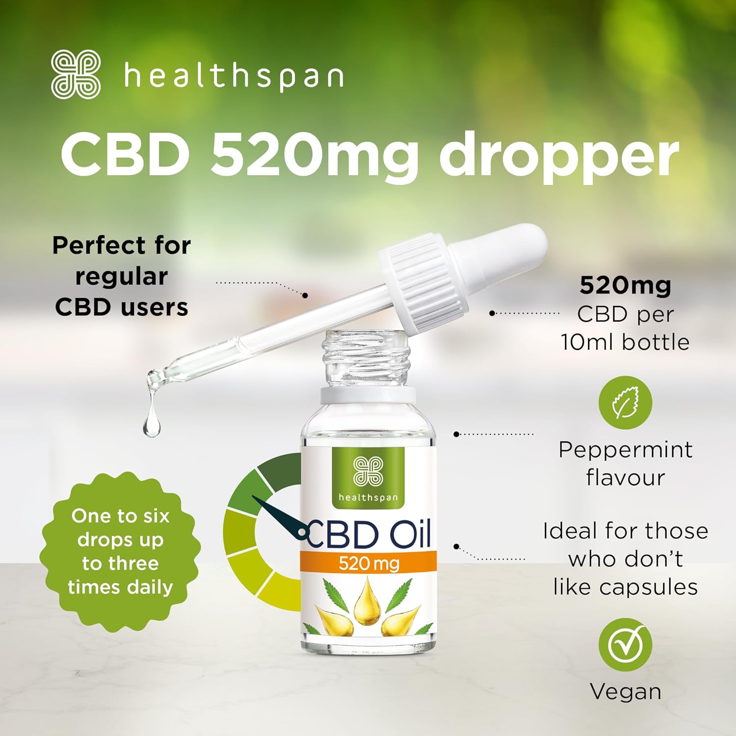 Healthspan 520Mg Cbd Oil Drops | 10Ml | Delicious Peppermint Flavour | Vegan