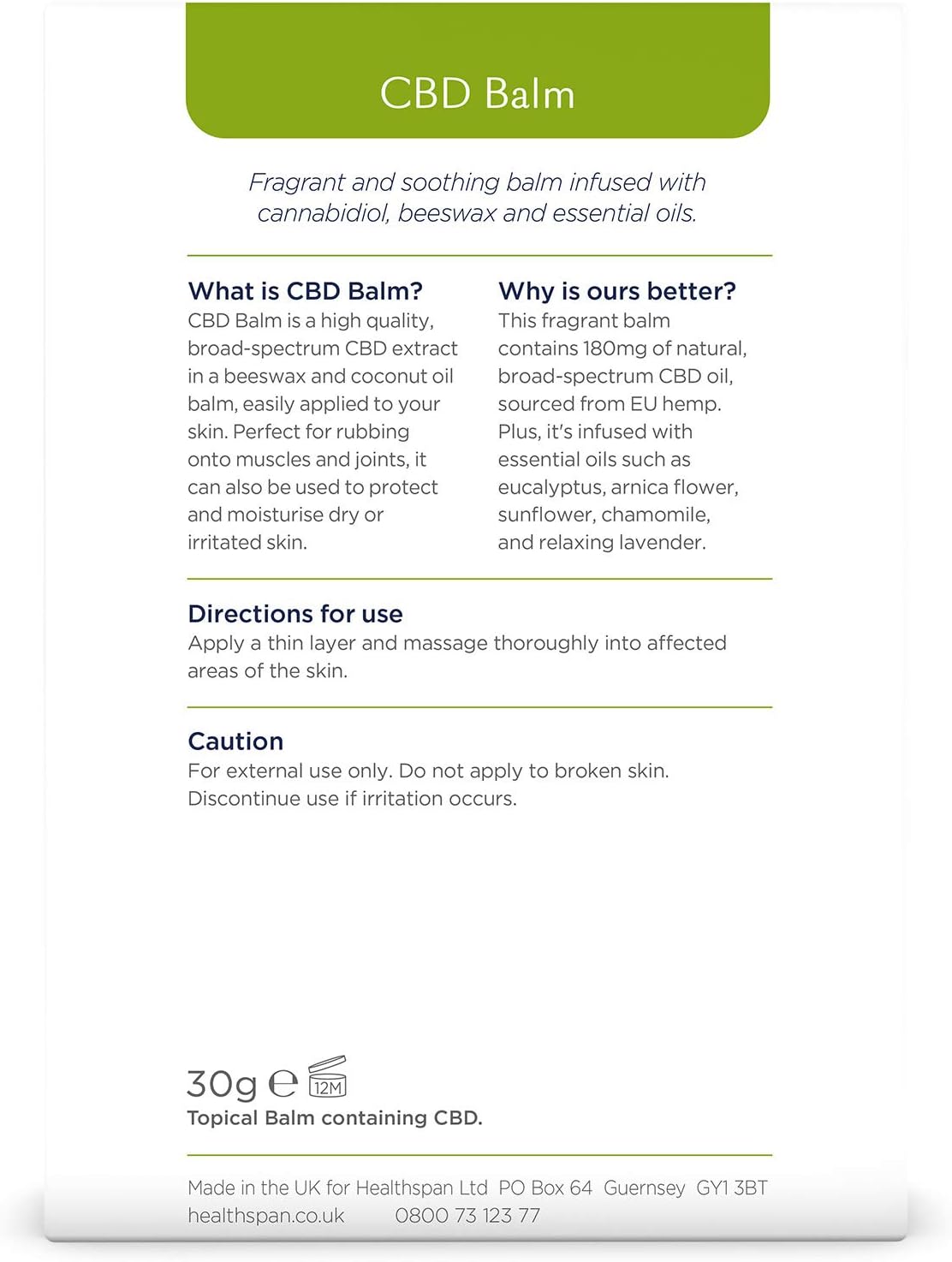 Healthspan Cbd Balm 30G Infused With 180Mg Cannabidiol Essential Oils, Cream, Aromatic Chamomile And Relaxing Lavender, 30 Gram