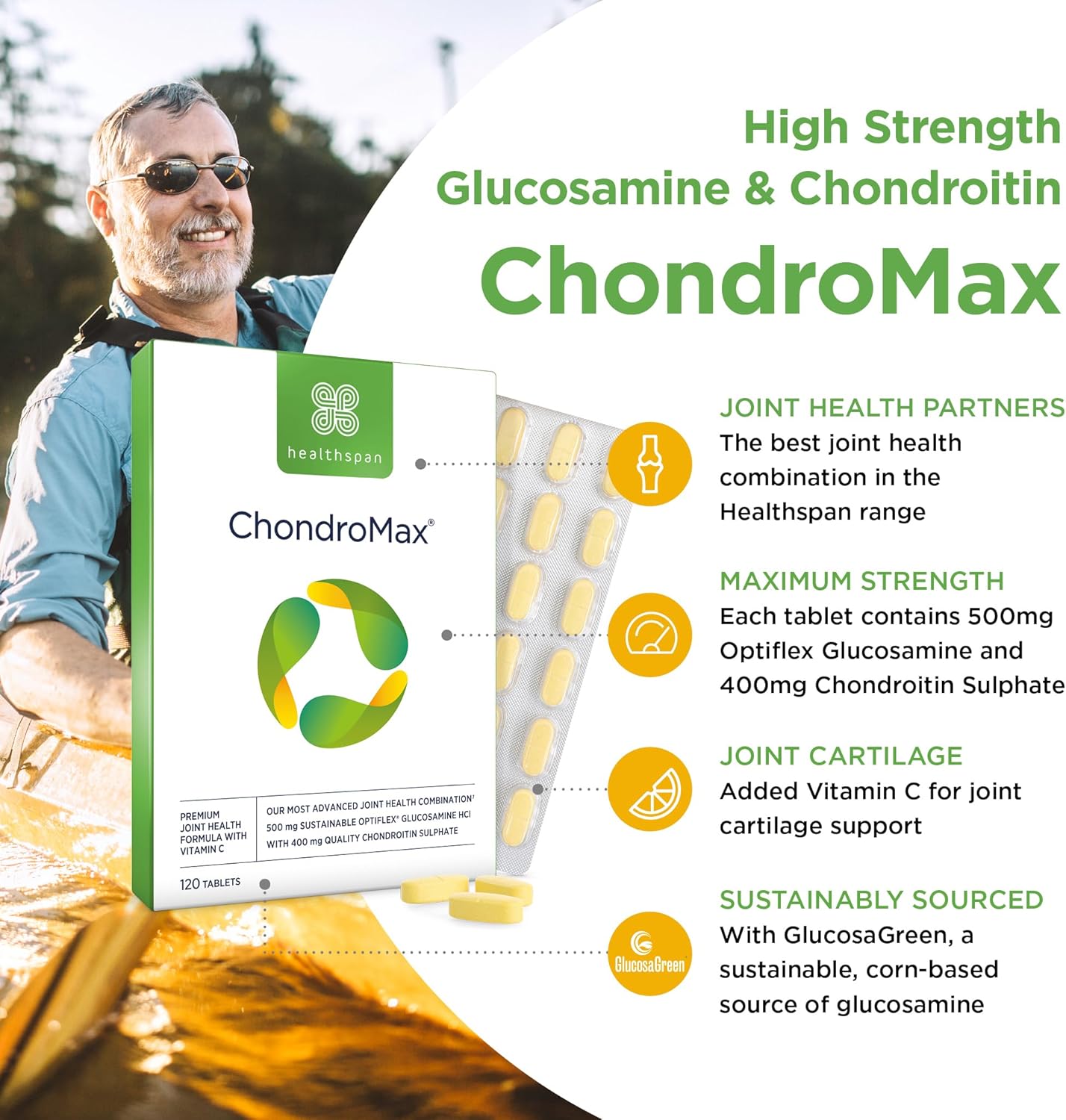 Healthspan High Strength Glucosamine & Chondroitin Joint Support | 500Mg Optiflex Glucosamine Hci & 400Mg Chondroitin Sulphate | Vitamin C For Joint Cartilage | Shellfish Free (60 Tablets)