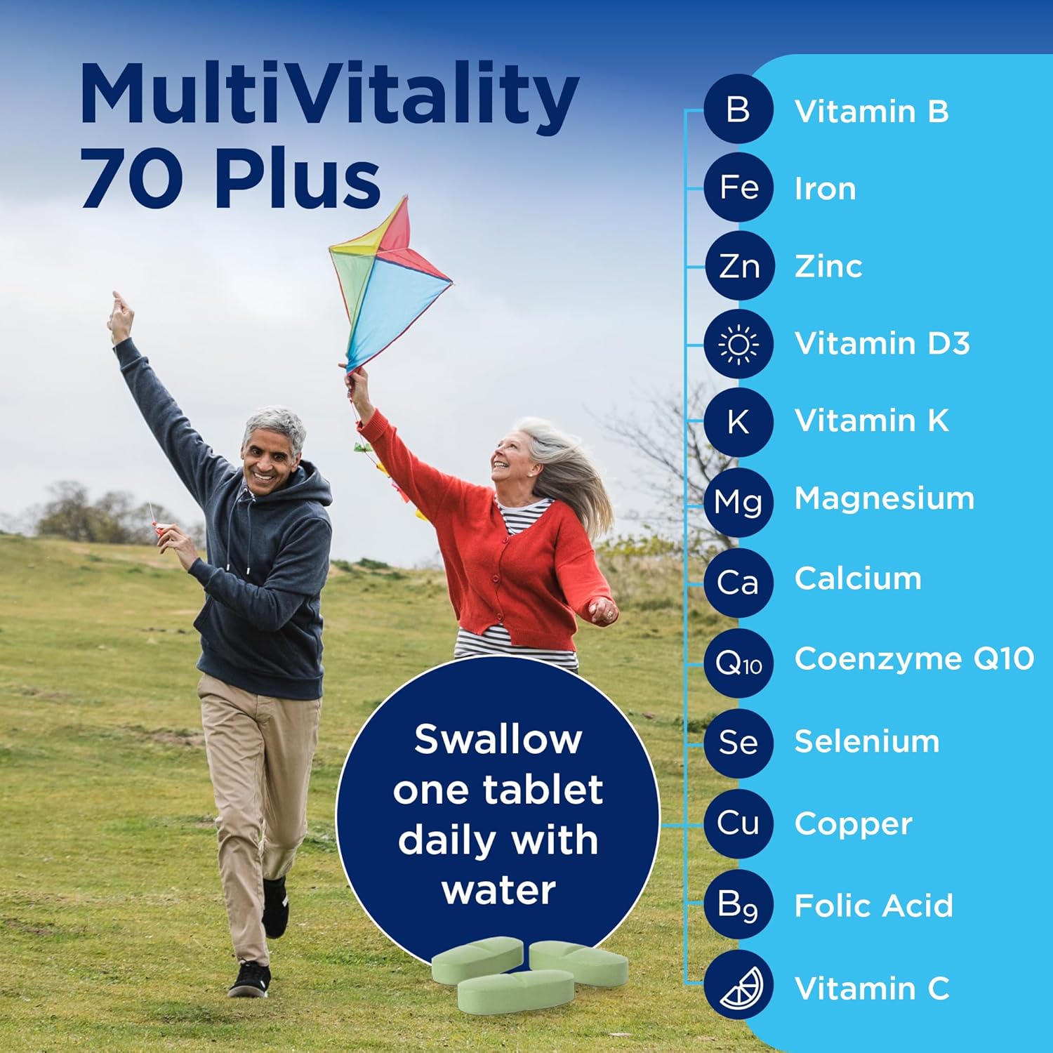 Healthspan Multivitamin 70 Plus | (120 Tablets) | Vitamin C & Vitamin D3 | Brain, Heart, Bone & Immunity Health | Ginseng, Bioflavonoids & Acetyl L-Carnitine | Vegan
