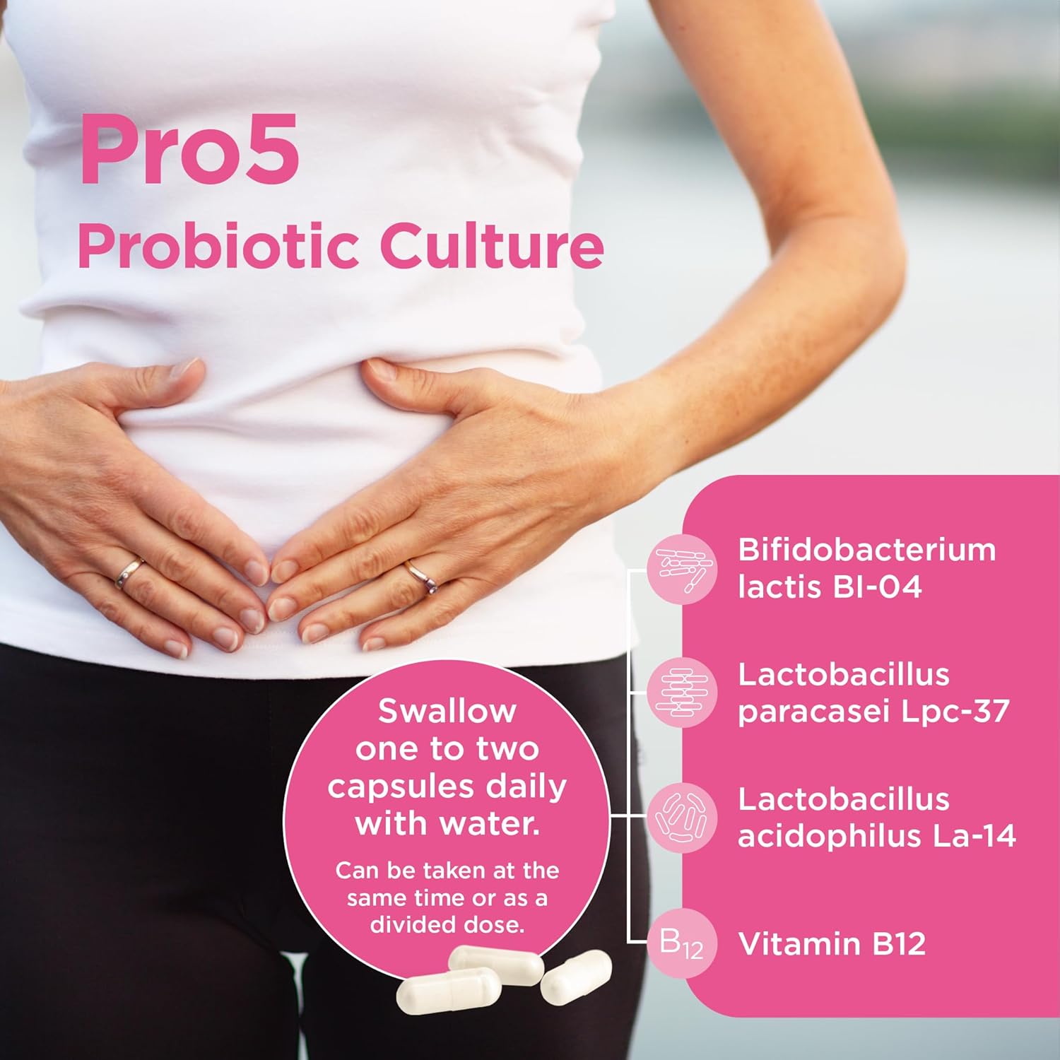 Healthspan Probiotic 5 | Multi-Strain Probiotic With 5 Billion Live Cultures From 3 Bacteria Strains | Vitamin B12 To Support Your Immune Health | Vegan & Lactose Free Capsules (60 Capsules)
