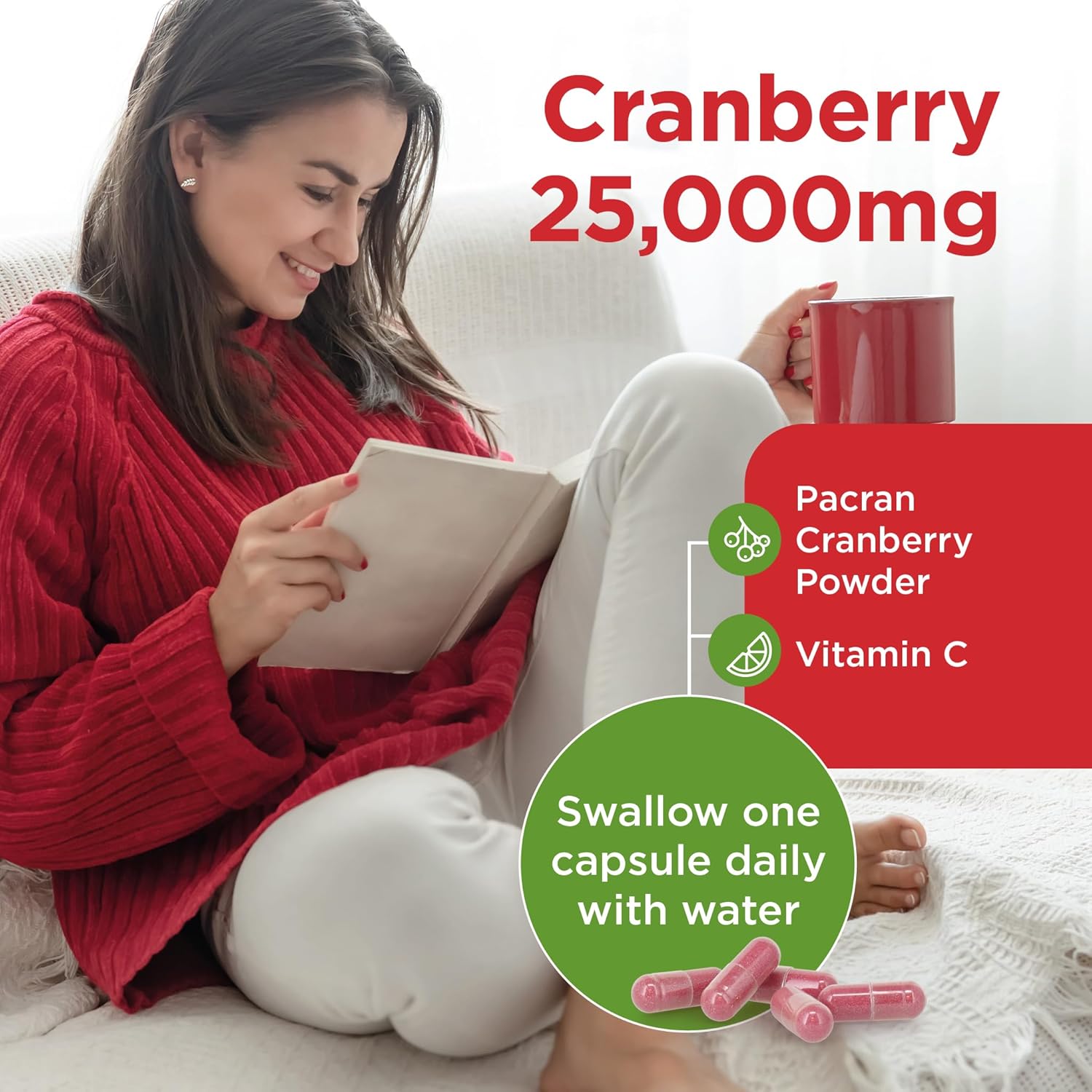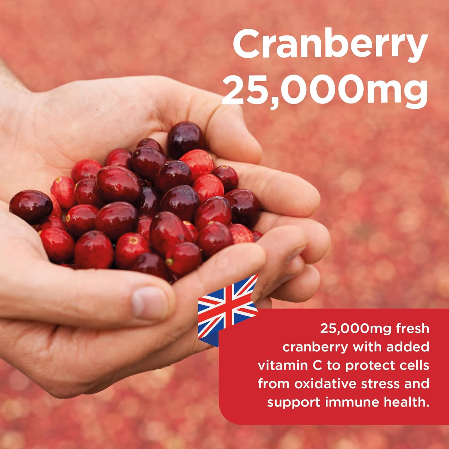 Healthspan Super Strength Cranberry (60 Capsules) | For Immune Health And Wellbeing | Equivalent To 25000 Mg Whole Fresh Cranberries | Highly Concentrated Formulation | Added Vitamin C | Vegan