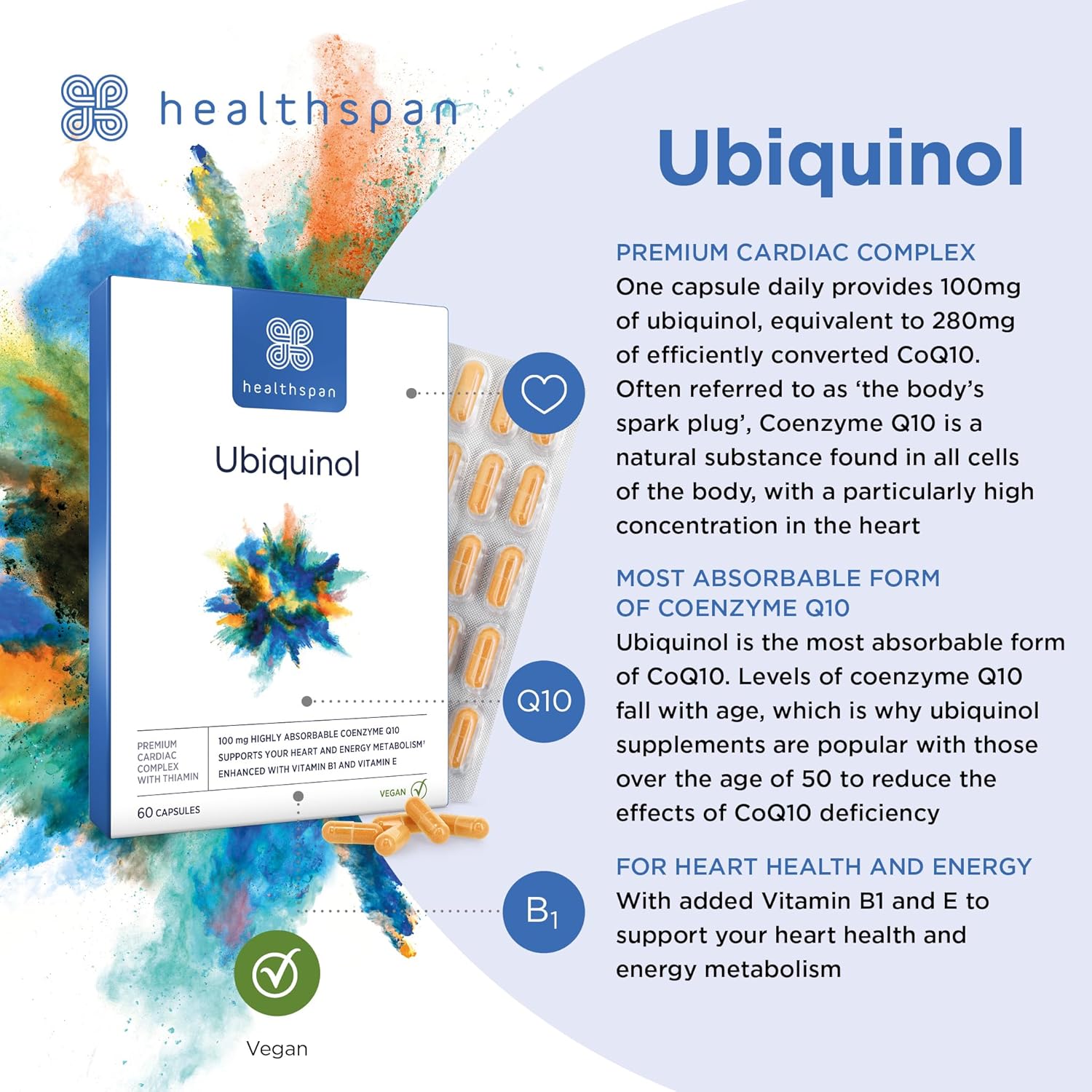 Healthspan Ubiquinol 100Mg | 60 Capsules | Coenzyme Q10 | Added Vitamin B1 | Heart Health | Energy Metabolism | Vegan