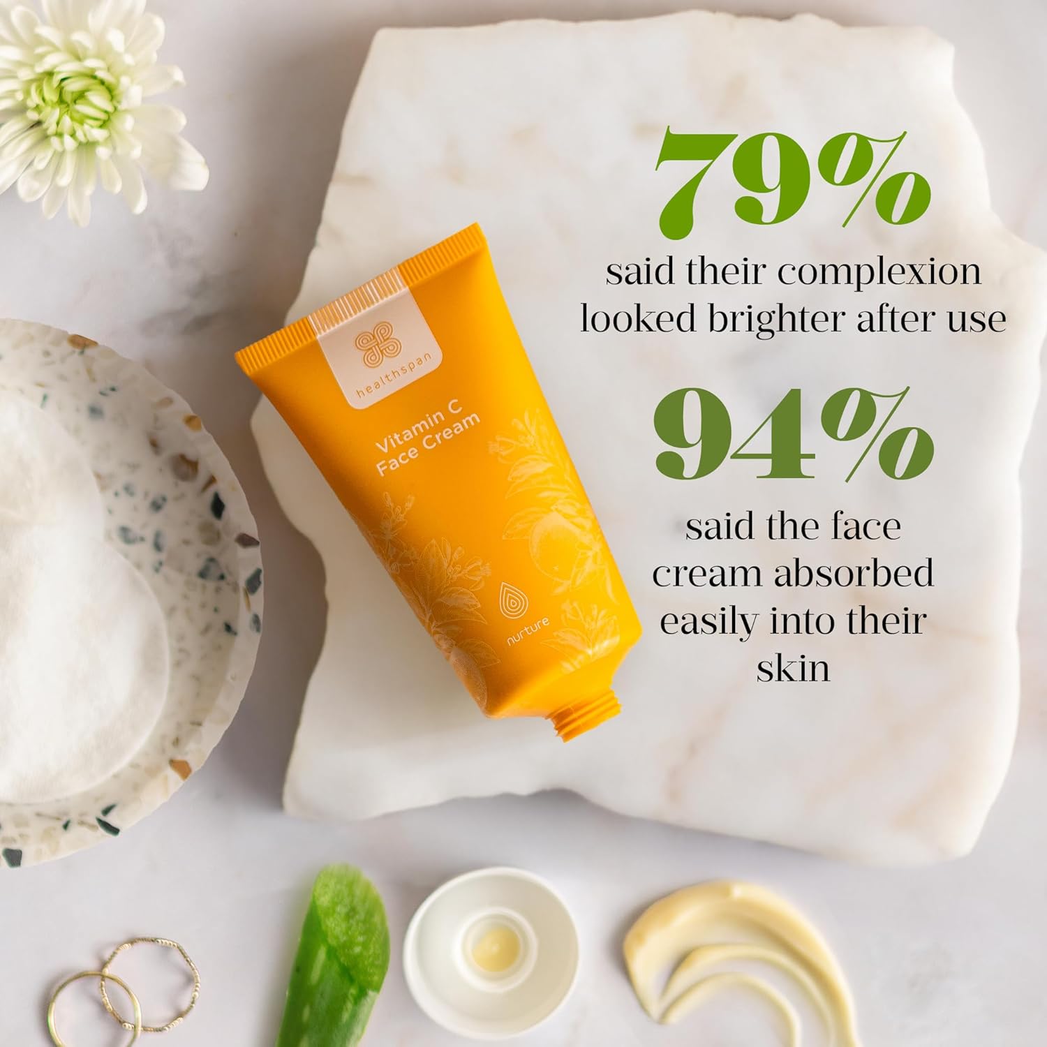 Healthspan Vitamin C Gel Face Cream (50Ml) | Triple Source Vitamin C | Vitamins A & E | Hydrate & Boost Skin Radiance | Reduce Appearance Of Fine Lines & Wrinkles | Support Collagen Formation | Vegan
