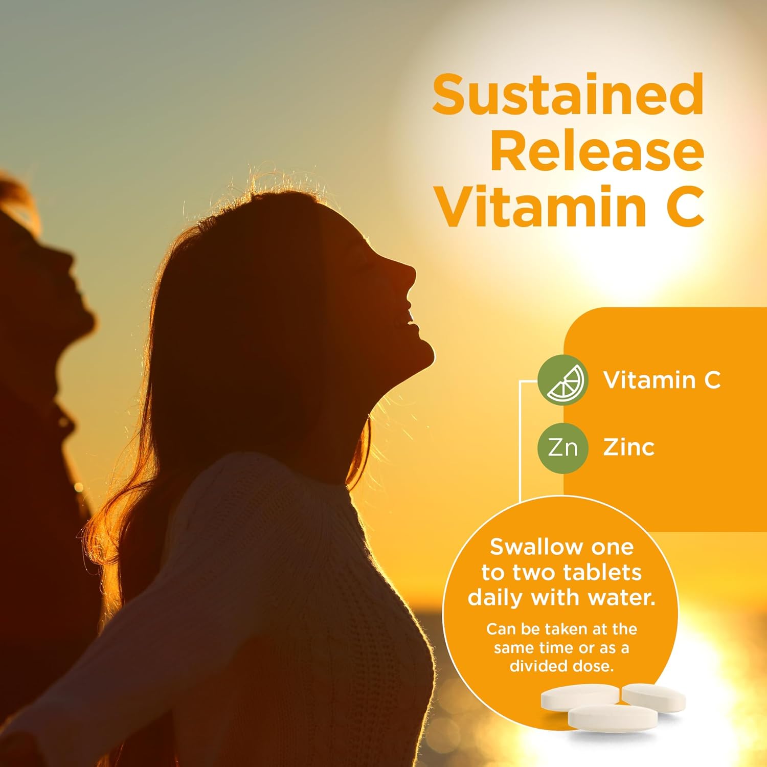 Healthspan Vitamin C Sustained Release 500Mg (3 Months' Supply) | To Support Your Immune And Nervous Systems | Added Zinc To Support Cognitive Function | Vegan