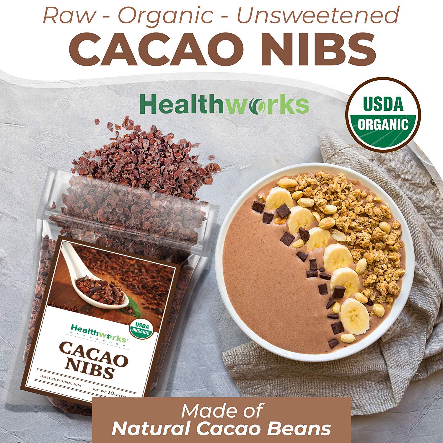 Healthworks Cacao Nibs Raw Organic (16 Ounces / 1 Pound) | Criollo Bean | Unsweetened Chocolate Substitute | Certified Organic | Keto, Vegan & Non-Gmo | Antioxidant