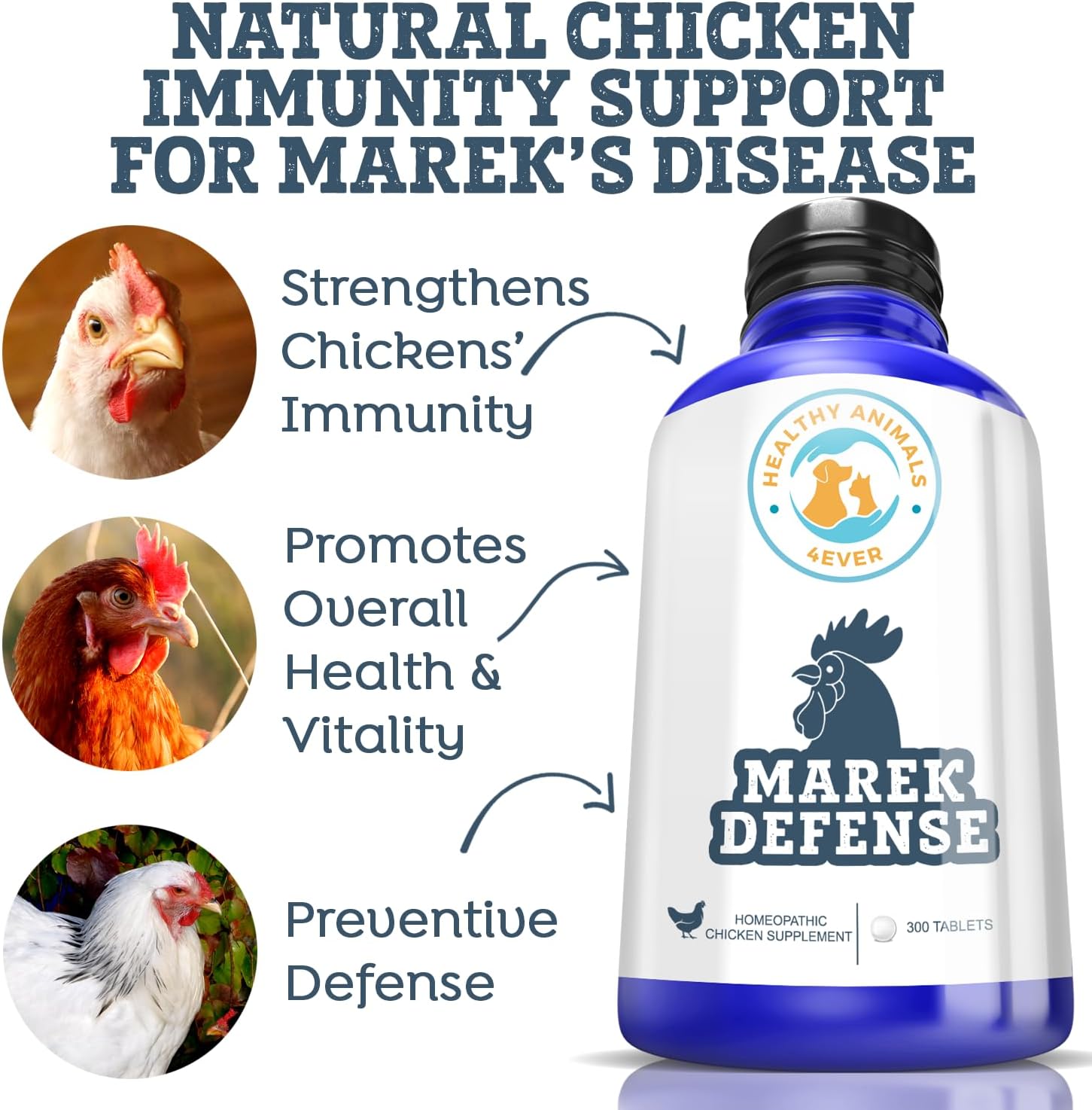 Healthy Animals 4Ever All-Natural Chicken Immunity Support For Marek’S Disease - Natural Prevention For Marek’S Disease - Homeopathic & Highly Effective - 300 Chicken Immunity Strengthening Tablets
