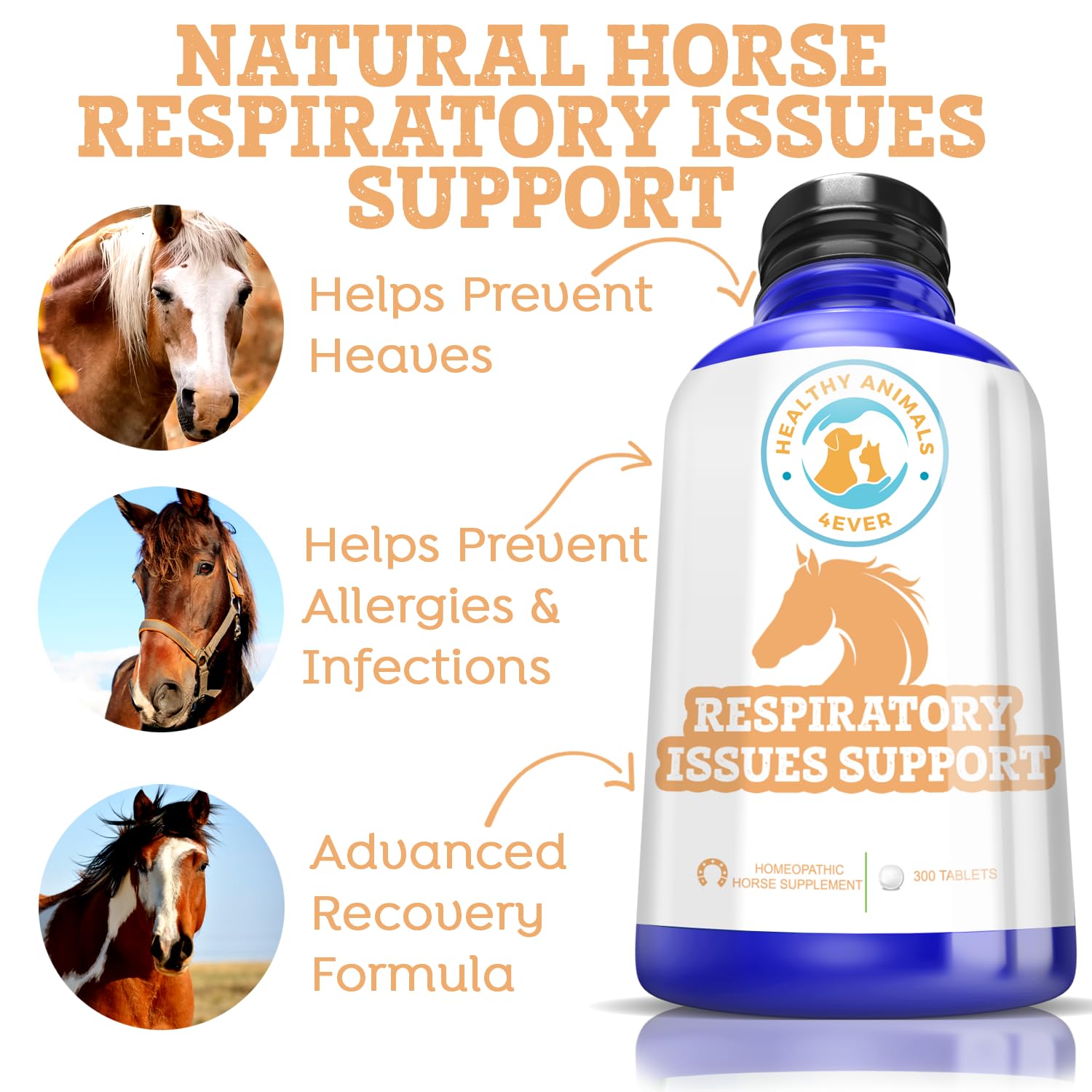 Healthy Animals 4Ever All-Natural Horse Respiratory Issues Support - Helps Prevent Heaves, Allergies & Infections - Supplements For Horses - Homeopathic & Highly Effective - 300 Tablets Unknown Binding