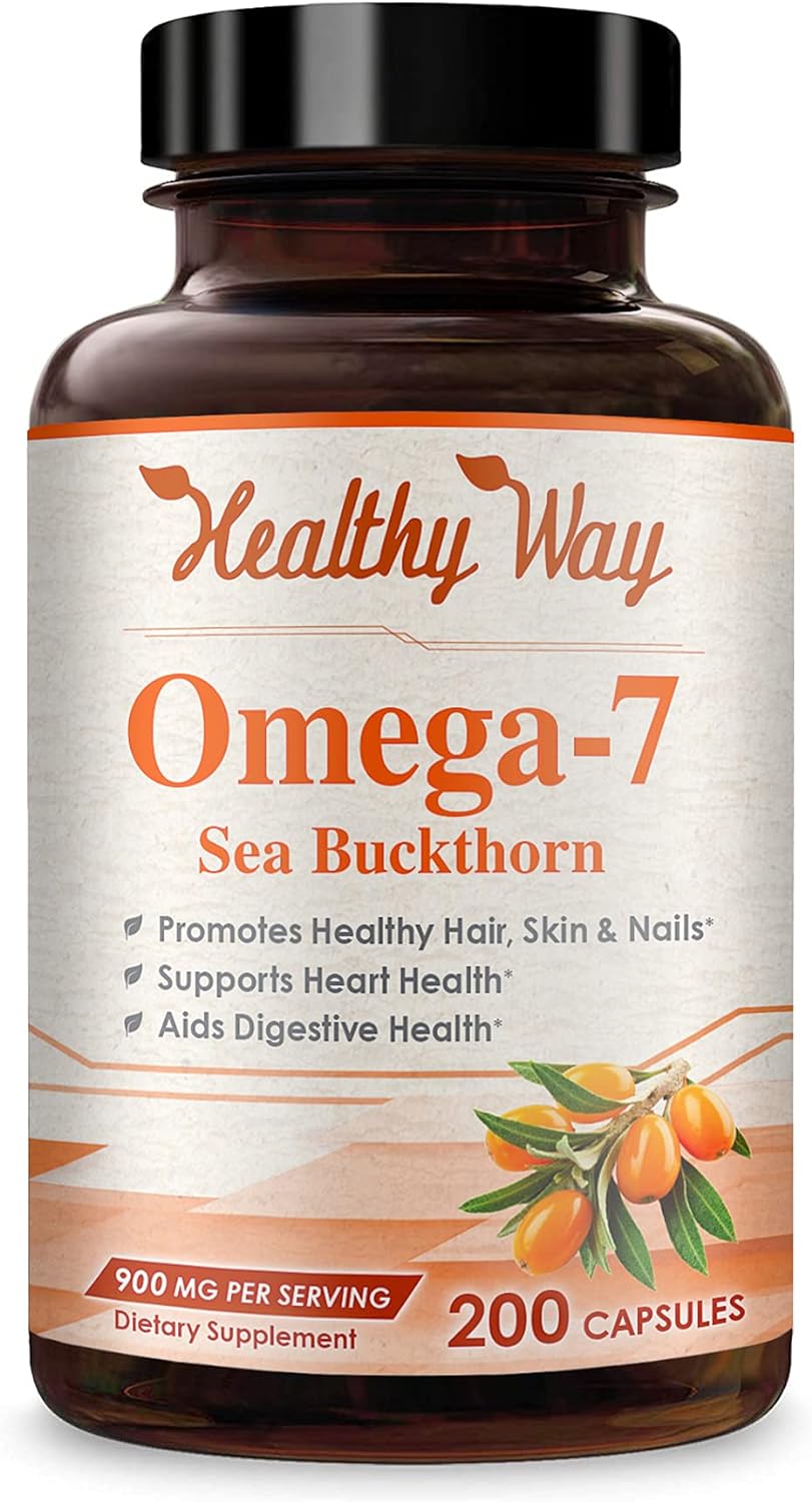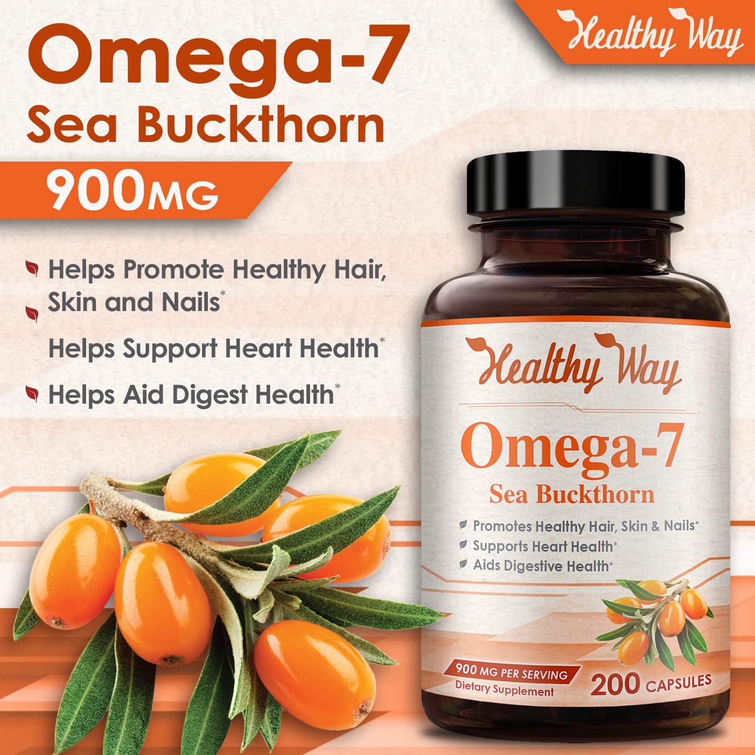 Healthy Way Pure Omega 7 Fatty Acids 200 Capsules 900Mg Natural Sea Buckthorn Oil, Non-Gmo Usa Made