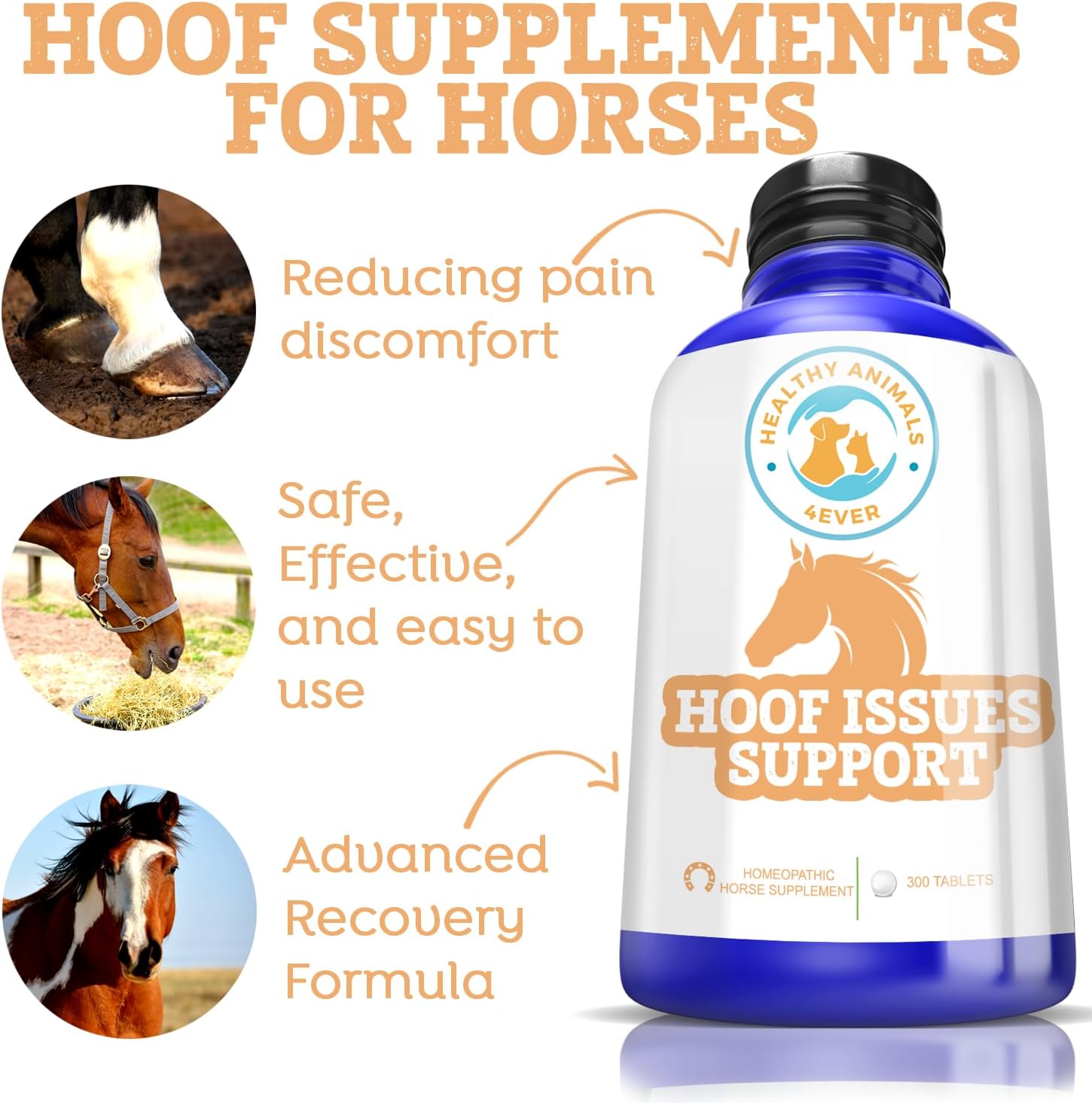 Healthyanimals4Ever All-Natural Horse Hoof Support Pellets - Horse Hoof Care Products For Damaged Or Injured Hooves - Hoof Supplements For Horses - Homeopathic & Highly Effective - 300 Tablets