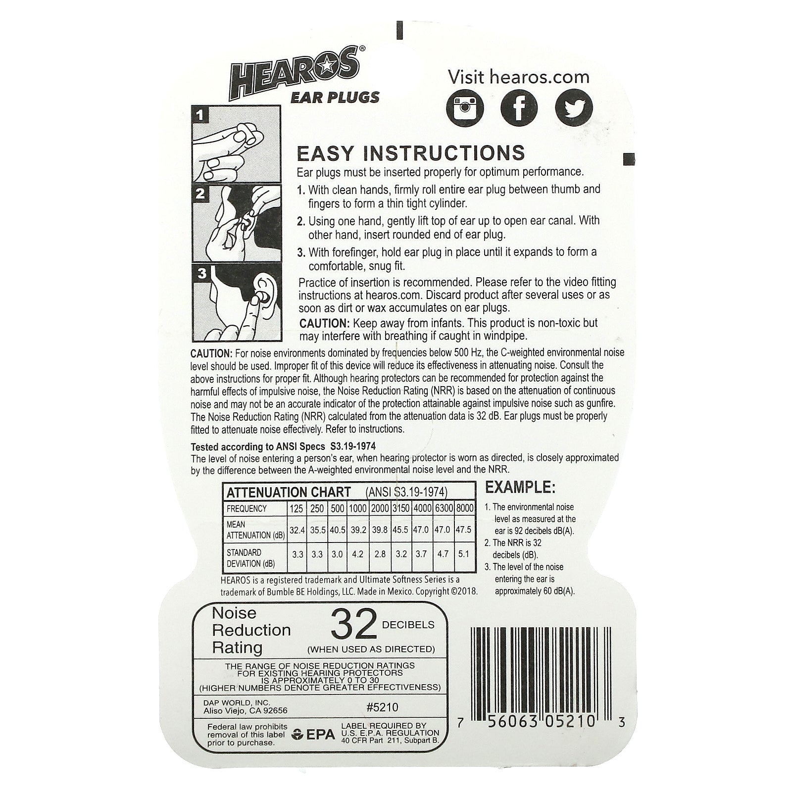 Practice of insertion is recommended. Please refer to the audio and video instructions at HEAROS.com. discard product after several uses or as soon as dirt or wax accumulates on ear plugs.
