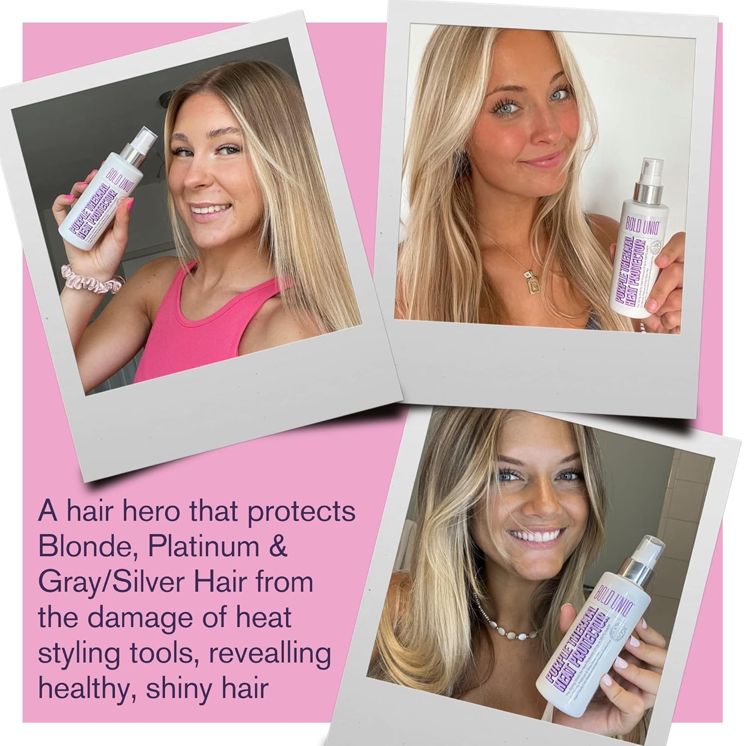 Heat Protectant Spray Formulated For Blonde, Platinum, Ash & Silver/Gray Hair. Thermal Shield Protection Professional Formula Minimises Brassy Yellow Tones. Protects Dry, Damaged, Frizzy & Curly Hair