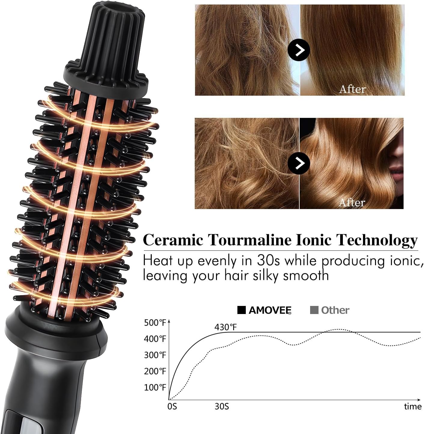 1.25-Inch Thermal Brush Create Natural Curls - Curling iron brush comb combines a curling brush, straightener and round comb in one, making it versatile. Whether you want to create fluffy curls, add volume to the roots, straighten your hair, or simply smooth it out, you can easily create exquisite styles