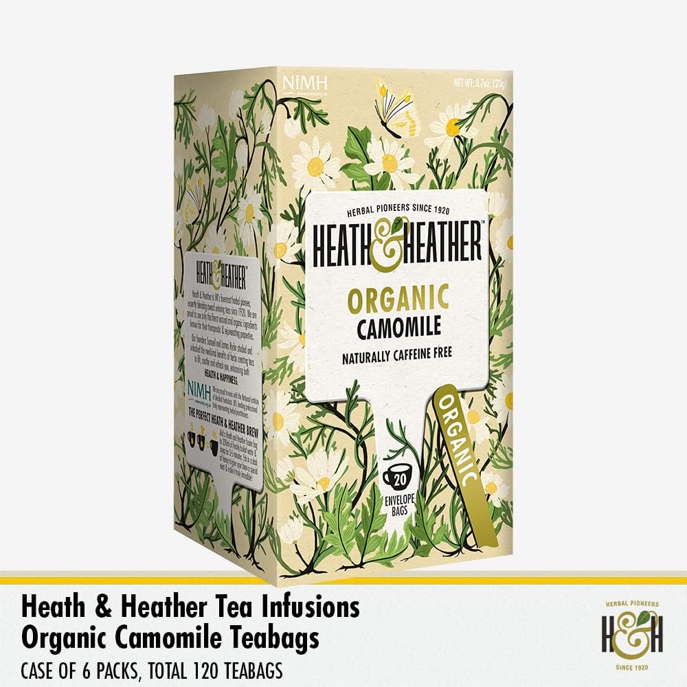 Heath & Heather Organic Camomile Teabags | Individually Wrapped Caffeine-Free Herbal Tea Infusion | 6 Packs Of 20, Total 120 Tea Bags