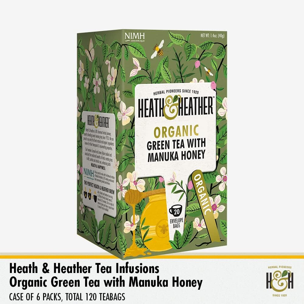 Heath & Heather Organic Green Tea With Manuka Honey Teabags | Individually Wrapped Herbal Tea Infusions | 6 Packs Of 20, Total 120 Tea Bags