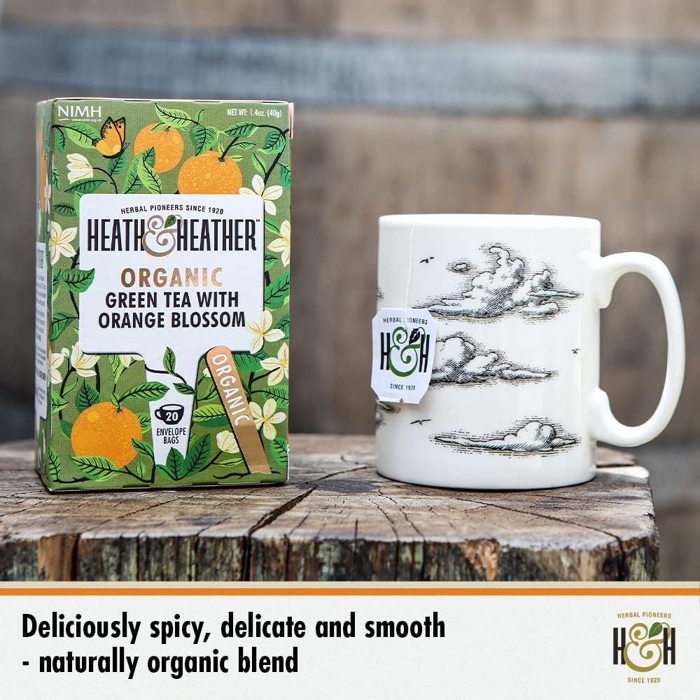 Heath & Heather Organic Green Tea With Orange Blossom (6 Packs Of 20, Total 120) Individually Wrapped Herbal Tea Infusions