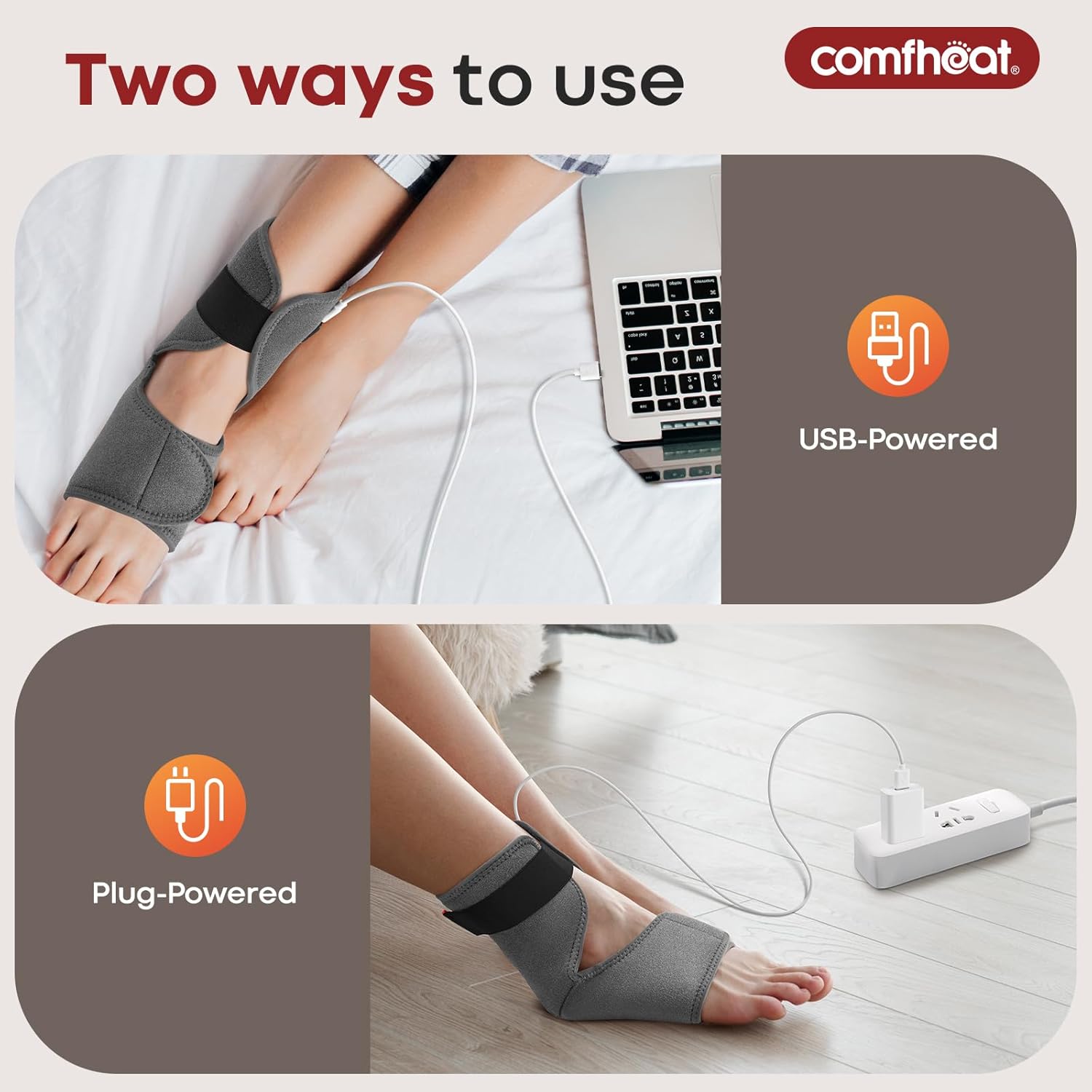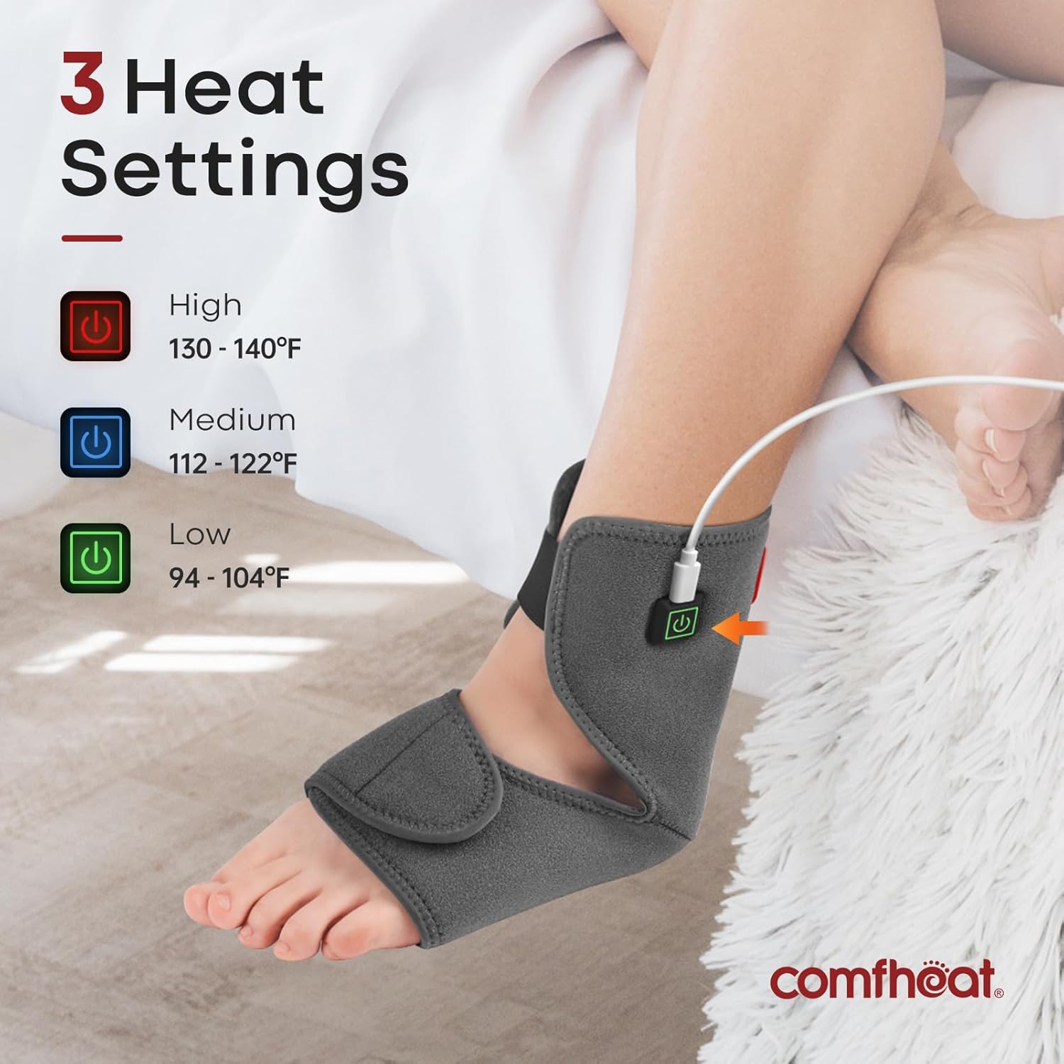 About this item Targeted Heel & Sole Relief: Designed to soothe Achilles tendonitis, plantar fasciitis, and heel pain with targeted heat therapy. Covers the heel and the back of the foot sole for effective pain relief and faster recovery 3 Heat Settings: Enjoy 3 adjustable heat levels (104?, 122?, 140?) for personalized comfort. Perfect for post-workout recovery, injuries, or daily relaxation, ensuring the ideal temperature for relief Safe & Reliable Design: Features 45-minute auto shut-off and overheat protection for worry-free use. Powered by USB with a 5.9ft cable for versatile and convenient use at home, work, or while traveling Adjustable & One Size Fits All: Equipped with adjustable velcro straps for a secure fit around the foot, ensuring comfort and full heat coverage on the heel and foot sole › See more product details,Targeted Heel & Sole Relief: Designed to soothe Achilles tendonitis, plantar fasciitis, and heel pain with targeted heat therapy. Covers the heel and the back of the foot sole for effective pain relief and faster recovery,3 Heat Settings: Enjoy 3 adjustable heat levels (104?, 122?, 140?) for personalized comfort. Perfect for post-workout recovery, injuries, or daily relaxation, ensuring the ideal temperature for relief,Safe & Reliable Design: Features 45-minute auto shut-off and overheat protection for worry-free use. Powered by USB with a 5.9ft cable for versatile and convenient use at home, work, or while traveling,Adjustable & One Size Fits All: Equipped with adjustable velcro straps for a secure fit around the foot, ensuring comfort and full heat coverage on the heel and foot sole