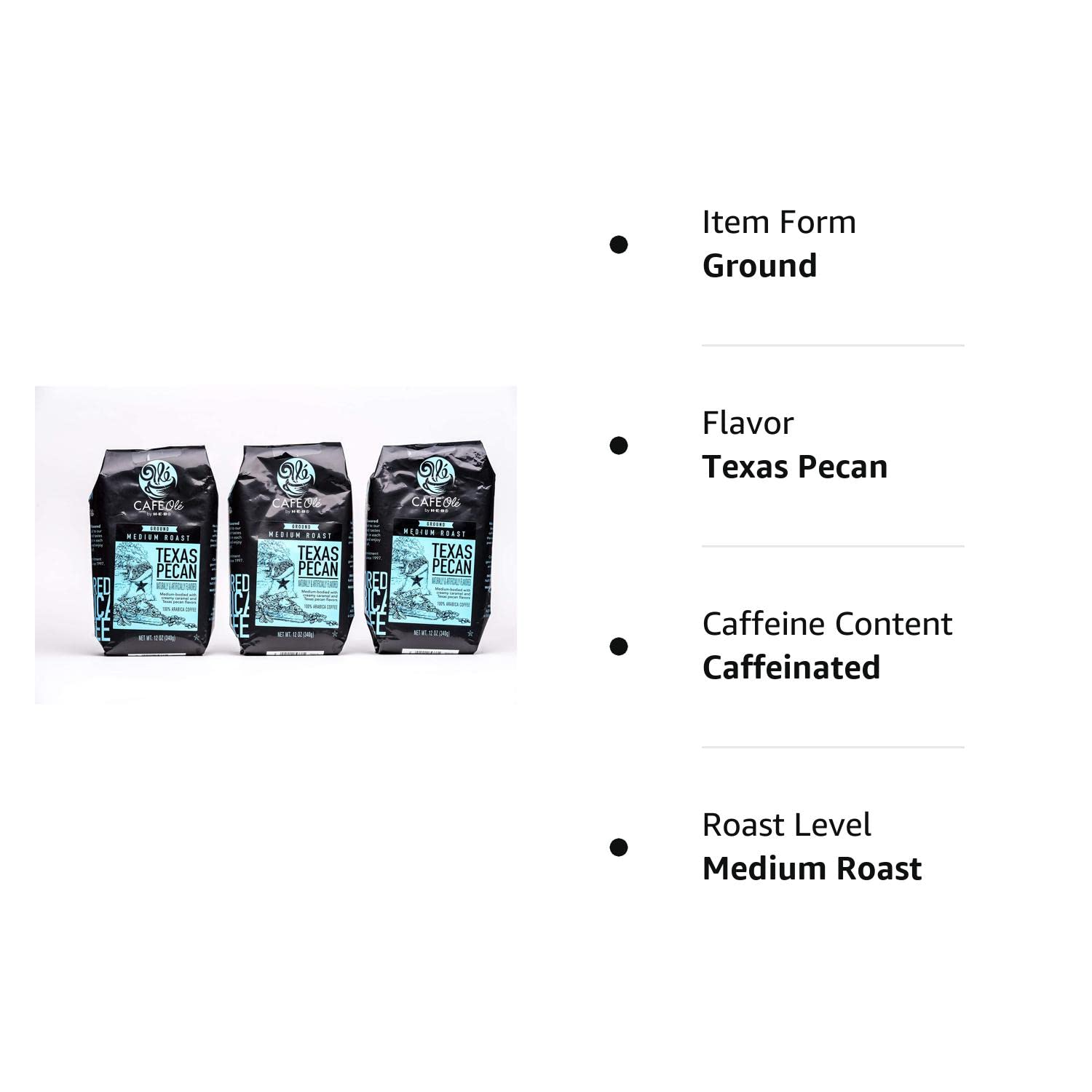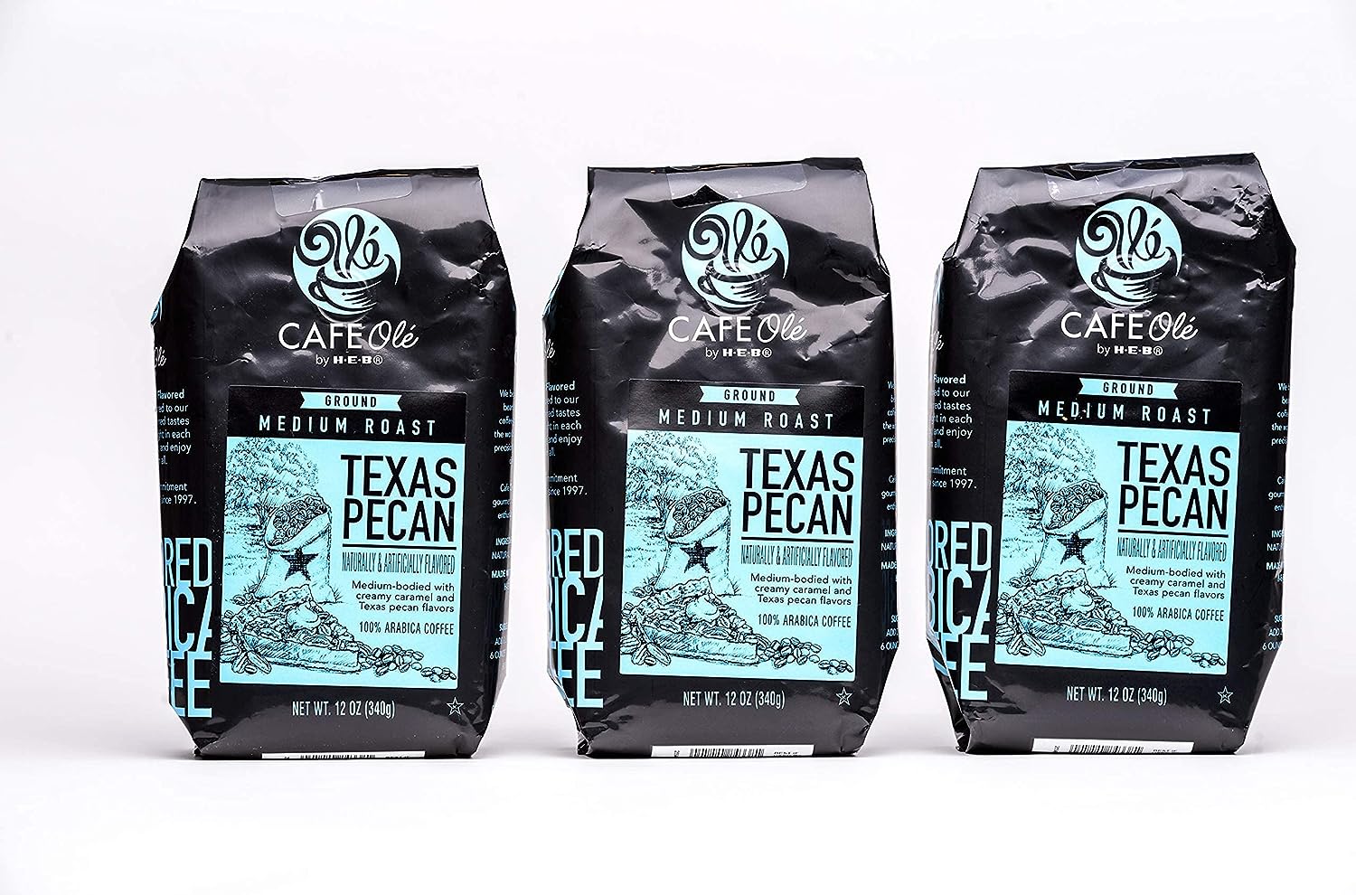 HEB Cafe Ole Ground Coffee 12oz Bag (Pack of 3) (Texas Pecan)