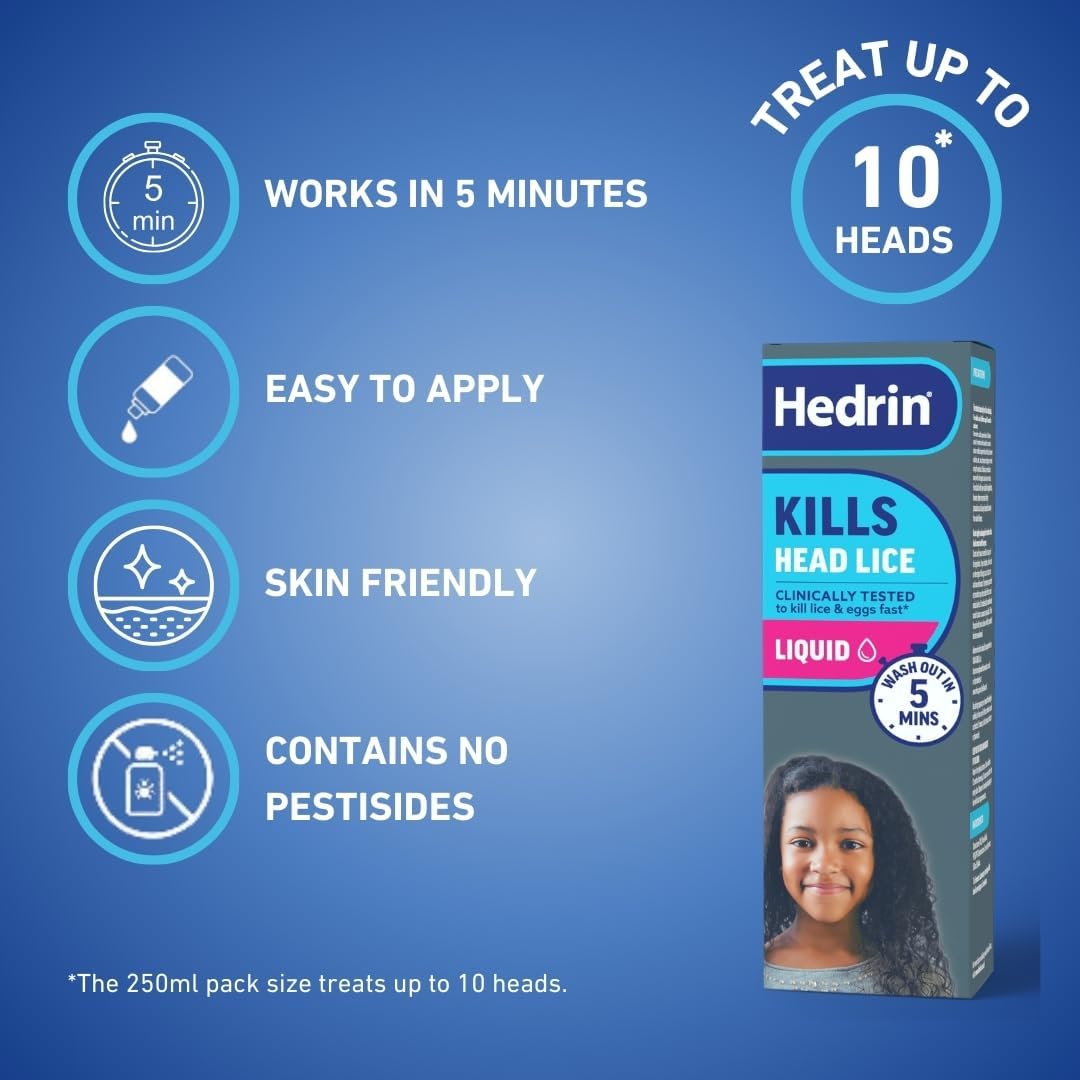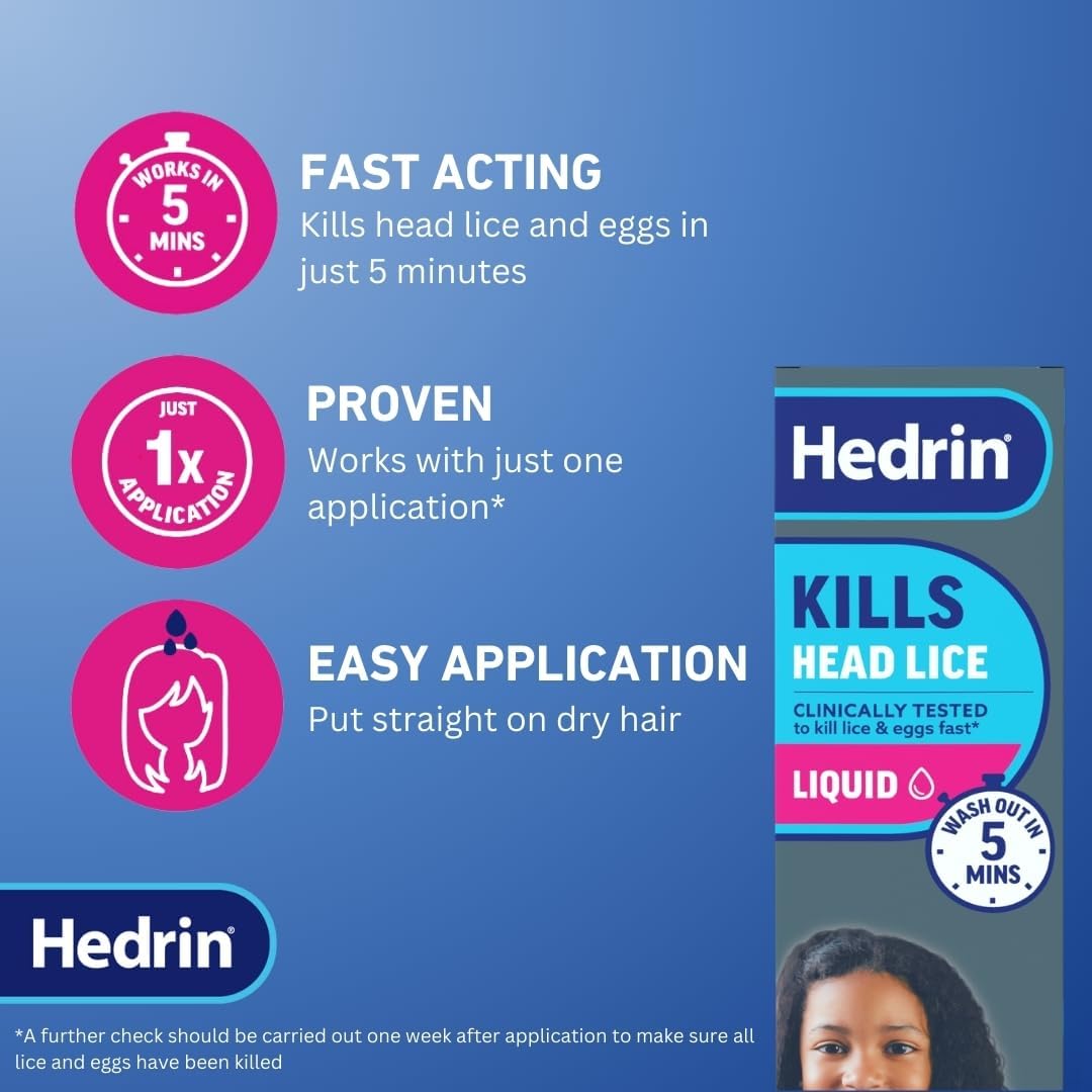 Hedrin Kills Headlice Liquid Gel, Fast And Effective Lice And Nit Treatment, Kills Head Lice And Eggs, 4 Treatments, Clinically Tested, Suitable For Adults And Children, 100Ml