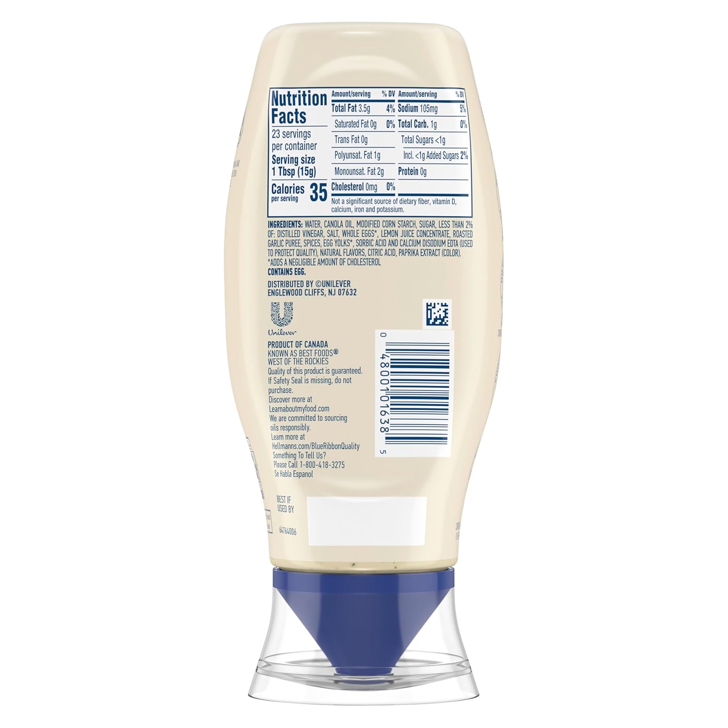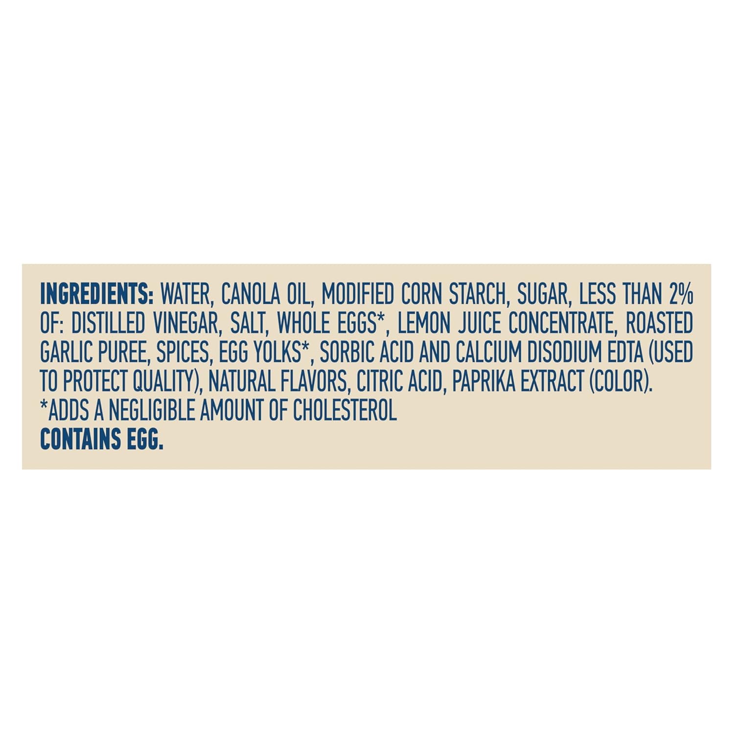 About this item DELICIOUS HERB FLAVOR: Hellmann's Italian Herb & Garlic Mayonnaise Dressing adds a vibrant and fresh flavor to your dishes. Delicious Herb Flavor, 100% Hellmann's. MADE WITH REAL HERBS: Hellmann's Italian Herb & Garlic Mayonnaise Dressing is made with real oregano, basil, and garlic and is the perfect condiment for sub sandwiches, roast chicken, and more. NO ARTIFICIAL FLAVORS: Made with high quality ingredients, this herb and garlic mayo sauce contains no artificial flavors. NO CHOLESTEROL, TRANS FAT, OR SATURATED FAT: This italian mayonnaise dressing is free from trans fat, saturated fat, and cholesterol. EXCELLENT SOURCE OF OMEGA 3 ALA: This garlic and herb mayo dressing is an excellent source of omega 3 ALA Contains 270mg of ALA per serving, which is 17% of the 1.6g daily value for ALA. Hellmann's, Bring Out The Best. See more product details,DELICIOUS HERB FLAVOR: Hellmann's Italian Herb & Garlic Mayonnaise Dressing adds a vibrant and fresh flavor to your dishes. Delicious Herb Flavor, 100% Hellmann's,MADE WITH REAL HERBS: Hellmann's Italian Herb & Garlic Mayonnaise Dressing is made with real oregano, basil, and garlic and is the perfect condiment for sub sandwiches, roast chicken, and more,NO ARTIFICIAL FLAVORS: Made with high quality ingredients, this herb and garlic mayo sauce contains no artificial flavors,NO CHOLESTEROL, TRANS FAT, OR SATURATED FAT: This italian mayonnaise dressing is free from trans fat, saturated fat, and cholesterol,EXCELLENT SOURCE OF OMEGA 3 ALA: This garlic and herb mayo dressing is an excellent source of omega 3 ALA Contains 270mg of ALA per serving, which is 17% of the 1.6g daily value for ALA,Hellmann's, Bring Out The Best