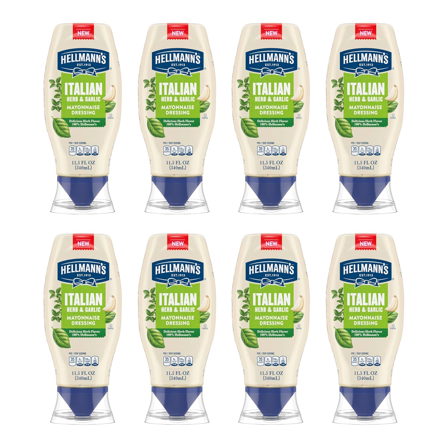 Hellmann'S Mayonnaise Dressing 8 Count Italian Herb & Garlic For A Deliciously Creamy Condiment, With Real Ingredients & No Artificial Flavors, 11.5 Oz