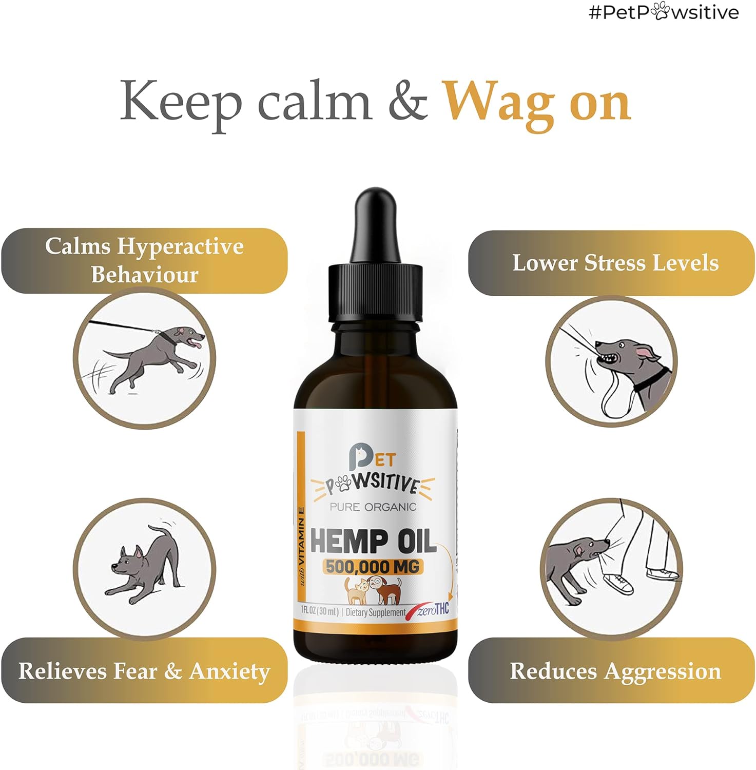 Keep Your Pet's Composure - This max potency pet hemp oil works for dogs and cats who get stressed out by loud noises like thunder, separation, vet visits10100% organic hemp extract is highly concentrated to speed healing antioxidants, flavonoids, amino acids and trace minerals to joint pain associated with aging. By supporting joint lubrication and swelling reduction, Pet Pawsitive Hemp for dogs and cats enhances your pet’s quality of life10Effective separation relief for dogs and cats may help ease aggression, destructive chewing and nuisance barking brought on by loud noises, illness and travel. Soothe your pacing pet and support nausea relief and relaxation without any impact on personality10Support overall well-being of your pet with Pet Pawsitive Hemp Oil. This multi-faceted pet supplement promotes digestive health that is critical to immune system function. In addition to pet anxiety relief, our hemp oil may ease itching due to skin conditions for a sleek, shiny coat10Made in the USA from the highest-quality pure hemp extract, Pet Pawsitive Cat and Dog Hemp Oil is non-GMO and cruelty-free. It is veterinarian-recommended and suitable for use with your pet’s other treatments. Use the dropper cap to dispense it orally or mix it into pet food