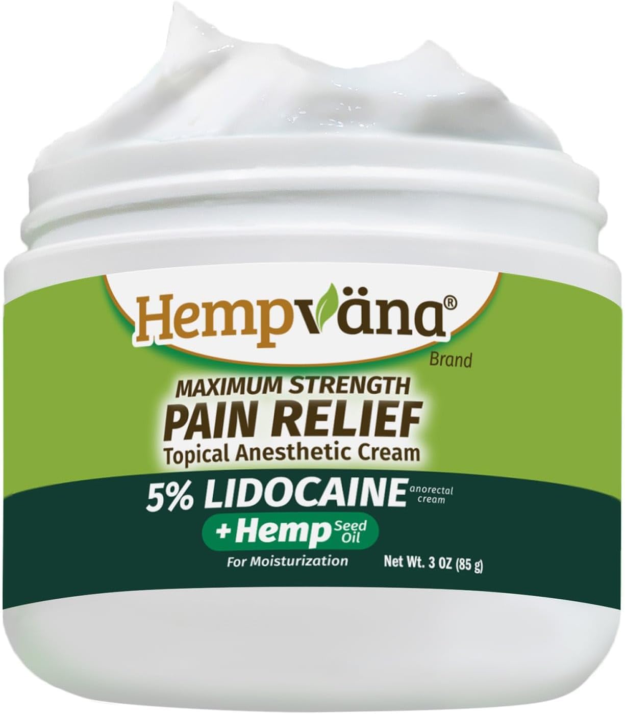 Maximum strength 5% lidocaine formula for fast and effective reliefEnriched with 100% pure hemp seed oilSoothes anorectal discomfort and irritated nervesNon-greasy and absorbs quicklyEasy to apply for targeted reliefHempvana 5% Lidocaine Relief Cream is the perfect solution for fast and effective pain relief! 5% Lidocaine is our strongest yet, providing fast and effective pain relief when you need it most. The 5% Lidocaine formula is designed to quickly numb irritated nerves, providing anesthetized pain relief. It's especially helpful for soothing anorectal pain! Hempvana 5% Lidocaine is non-greasy and absorbs quickly, so it's easy to apply and won't leave any residue. Plus, our cream is enriched with hemp seed oil, which helps protect your skin and ensures fast absorption. When pain strikes, simply rub it on where it hurts and let Hempvana 5% Lidocaine go to work. Made in America with globally-sourced ingredients, you can trust Hempvana for safe, effective pain relief. Don't suffer any longer - try Hempvana 5% Lidocaine Pain Relief Cream today!