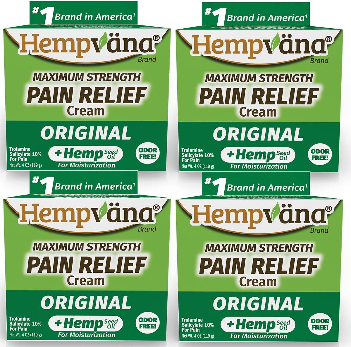 Hempvana Relief Cream 4 Pack With Seed Extract - Relieves Inflammation, Muscle, Joint, Back, Knee, Nerves And Arthritis Made In Usa 4Oz Paraben Free, Vegan, Cruelty-Free As Seen On Tv