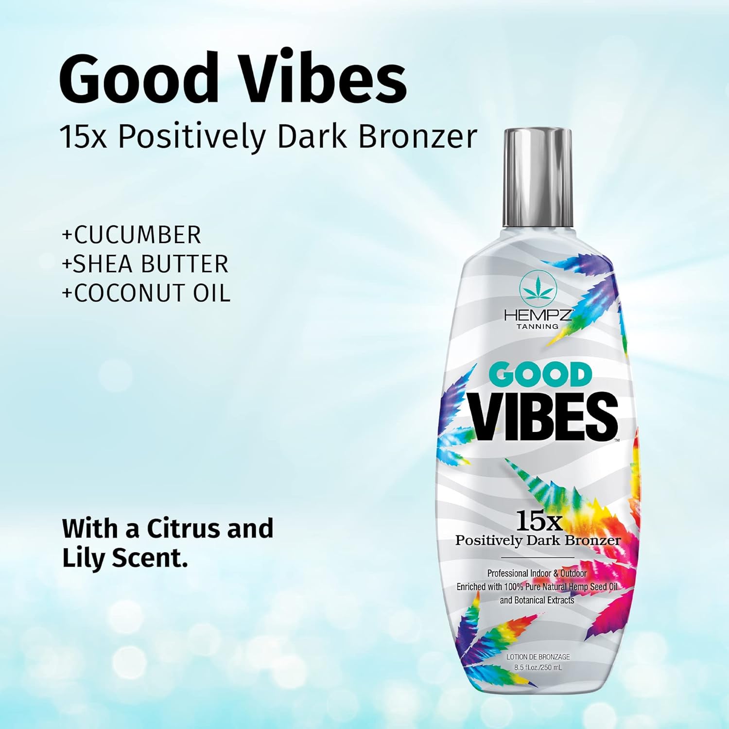 Hempz Good Vibes 15X Positively Dark Bronzer - Herbal Moisturizing Self Tanning Lotion For Tanning Beds, Beach, Sun 8.5 Fl Oz
