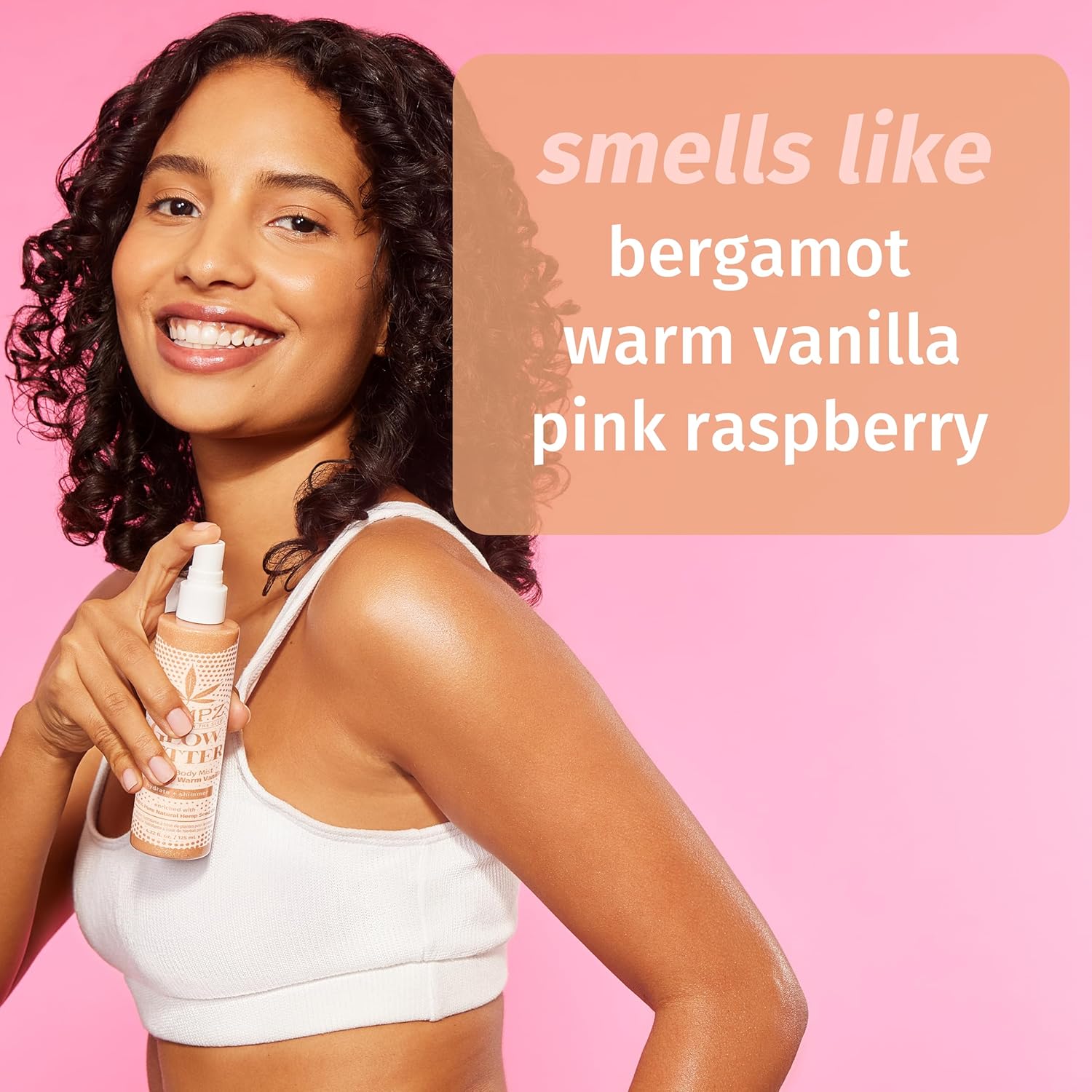 About this item SCENT: A Sensual Scent with notes of bergamot, warm vanilla & pink raspberries SHINE ON: Hempz Body Mist with give you that glow and oh-so-yummy smell. Just a few sprays gives skin a subtle glimmer with finely ground mica, a naturally occurring mineral SOFT TOUCH: All Hempz products helps calm and soothe skin with shea butter, hemp seed oil, and aloe MULTIVITAMIN: Helps protect against natural & environmentally triggered oxidants with vitamins A, C & E VEGAN: Hempz Body Spray is 100% vegan, and free of paraben, gluten, and THC See more product details,SCENT: A Sensual Scent with notes of bergamot, warm vanilla & pink raspberries,SHINE ON: Hempz Body Mist with give you that glow and oh-so-yummy smell. Just a few sprays gives skin a subtle glimmer with finely ground mica, a naturally occurring mineral,SOFT TOUCH: All Hempz products helps calm and soothe skin with shea butter, hemp seed oil, and aloe,MULTIVITAMIN: Helps protect against natural & environmentally triggered oxidants with vitamins A, C & E,VEGAN: Hempz Body Spray is 100% vegan, and free of paraben, gluten, and THC