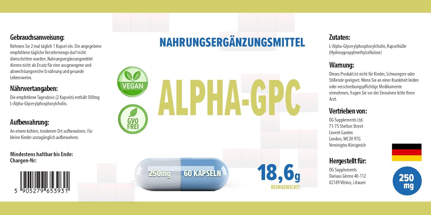 Product description Hepatica Alpha GPC Choline 500mg Per Serving β 60 Vegan Capsules | High-Strength Brain, Memory & Cognitive Support Enhance brain function, memory, and focus with Hepatica Alpha GPC Choline 500mg β a highly bioavailable form of choline essential for neurotransmitter production, cognitive performance, and overall brain health. Alpha GPC (L-Alpha Glycerylphosphorylcholine) is one of the most effective nootropic compounds, known for its ability to increase acetylcholine levels, improve mental clarity, and support long-term cognitive health. Each vegan-friendly capsule delivers a potent 500mg per serving, ensuring maximum absorption and effectiveness without fillers or bulkers. Why Choose Hepatica Alpha GPC ? High-Strength 500mg Per Serving β A powerful dose of pure Alpha GPC Choline, a key nutrient for neurotransmitter production and brain function. ? Enhances Memory & Learning β Supports memory recall, focus, and cognitive speed, making it ideal for students, professionals, and aging individuals. ? Boosts Focus & Mental Clarity β Helps improve attention span, reduce brain fog, and optimize cognitive performance. ? Supports Brain & Nervous System Health β Alpha GPC plays a crucial role in acetylcholine production, essential for nerve signaling and brain cell communication. ? Promotes Neuroprotection & Cognitive Longevity β Helps protect brain cells from oxidative stress, supporting long-term mental clarity. ? 60 Vegan Capsules β 1-Month Supply β A convenient daily supplement designed for consistent brain and nervous system support. ? No Fillers, No Bulking Agents, No Artificial Additives β A clean and pure formula with only active ingredients. ? 3rd Party Lab Tested for Purity & Safety β Ensuring premium quality, potency, and effectiveness. ? Gluten-Free, Non-GMO & GMP-Certified β Manufactured under strict quality control standards for safety and reliability. The Benefits of Alpha GPC Choline ?? ? Boosts Mental Performance & Alertness β Supports concentration, focus, and reaction time. ?? Enhances Memory & Cognitive Function β Aids in learning, recall, and brain processing speed. ??? Supports Brain Cell Protection & Longevity β Helps protect neurons from oxidative stress and age-related cognitive decline. ?? Increases Acetylcholine Levels for Brain Function β Supports the production of acetylcholine, a key neurotransmitter for learning and memory. ??? Athletic Performance & Muscle Function β May assist in muscle coordination and power output, making it beneficial for athletes and active individuals. Who Can Benefit ? Students & professionals looking to enhance focus, memory & productivity ? Individuals experiencing brain fog, cognitive decline & memory loss ? Those seeking long-term brain health & neuroprotection ? Athletes & fitness enthusiasts for muscle coordination & performance ? Anyone looking for a high-strength, lab-tested Alpha GPC supplement Directions for Use ?? Serving Size: 2 capsules per day with water ?? Best Taken: In the morning or early afternoon for optimal mental performance and focus. ? Do Not Exceed the recommended daily dose. Important Notes: ? Consult a healthcare professional before use if you are pregnant, nursing, taking medication, or have a medical condition. ? Not recommended for children unless advised by a healthcare provider. ? Boost Your Brain Power & Mental Clarity with Alpha GPC! Our high-strength, pure Alpha GPC Choline supplement is designed to support brain function, enhance memory, and promote cognitive longevity, helping you stay sharp, focused, and mentally energized every day. Ingredients Per capsule: 250mg L-a- Glycerophosphorylcholine (alpha GPC), stabilizing agent - hydroxypropylmethylcellulose (capsule shell ingredient) P.when('A').execute(function(A) { A.on('a:expander:toggle_description:toggle:collapse', function(data) { window.scroll(0, data.expander.$expander[0].offsetTop-100); }); }); Directions As a food supplement take 2 vegan capsules daily, preferably with a glass of water. Recommended daily intake (2 capsules) contains 500 mg of L-a-Glycerophosphorylcholine Alpha-GPC. Each bottle contains 60 capsules. 1 Month supply. Safety Warning Do not exceed the recommended daily portion. The supplements can not be used as a substitute for a diverse diet. Do not use in case of sensitivity to any of the product ingredients. Not suitable for children and pregnant or breastfeeding women. Keep away from the reach of children. See more,? High-Strength Alpha GPC β 500mg Per Serving β Delivers a potent dose of pure Alpha GPC Choline, a highly bioavailable form of choline that supports cognitive function and brain health,? Enhances Memory & Learning β Helps improve recall, focus, and processing speed, making it ideal for students, professionals, and aging individuals,? Boosts Focus & Mental Clarity β Supports concentration, alertness, and reaction time, reducing brain fog and mental fatigue,? Supports Brain & Nervous System Health β Aids in acetylcholine production, a key neurotransmitter for nerve signaling, learning, and memory,? Neuroprotective & Cognitive Longevity β Helps protect brain cells from oxidative stress, supporting long-term mental clarity and cognitive function,? May Aid Athletic Performance & Muscle Function β Some research suggests Alpha GPC can support muscle coordination, strength, and power output, making it beneficial for athletes and active individuals,? 60 Vegan Capsules β 1-Month Supply β A convenient daily supplement, designed for consistent brain and nervous system support,? No Fillers, No Bulking Agents, No Artificial Additives β A clean and pure formula, free from preservatives, unnecessary fillers, gluten, and GMOs,? 3rd Party Lab Tested & GMP Certified β Rigorously tested for purity, potency, and safety, ensuring a high-quality Alpha GPC supplement you can trust